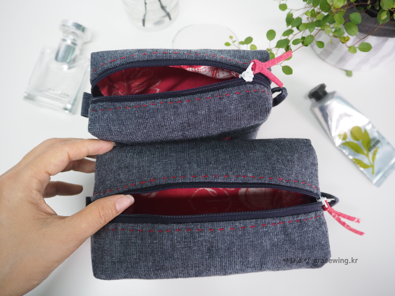 지퍼 슬라이더에 끼울 끈도 만들고... 일단 포인트는 이걸로~이번 파우치 시리즈는 심플~ 심플이야!