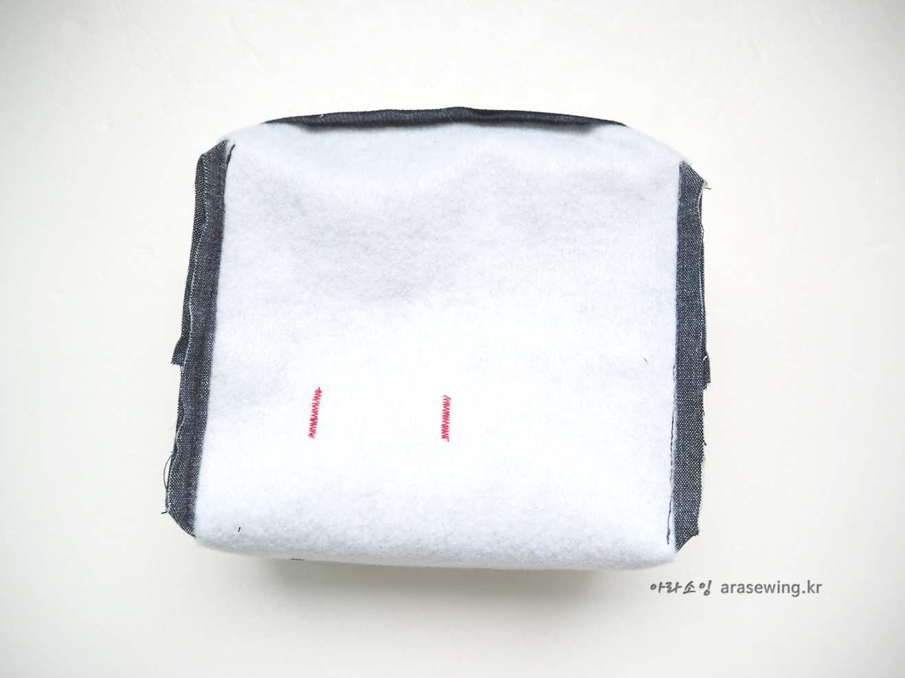 5. 양쪽 옆선을 마주 보네 하고 박음질합니다.