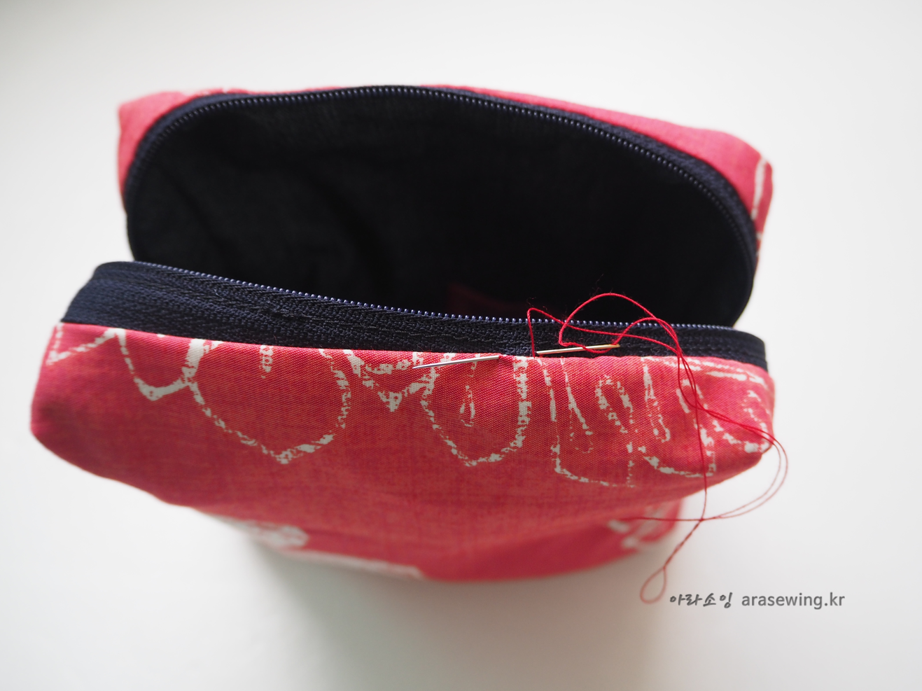 6. 모서리 부분을 박음질합니다.(네 군데입니다)