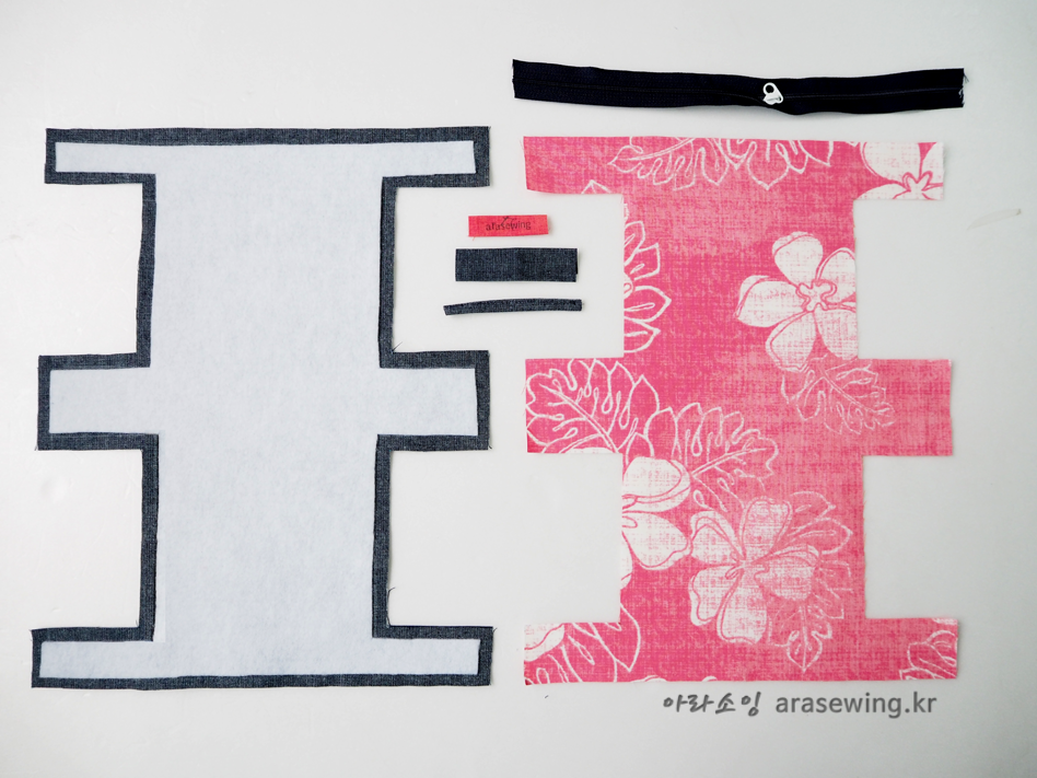 도안대로 원단을 준비하고 겉감에 3온스 접착솜을 붙입니다