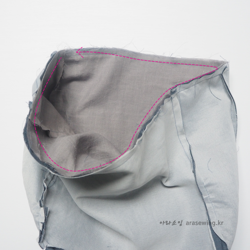 (이렇게 하면 주머니 감을 박을 때 시접을 접지 않아도 되겠지요?)