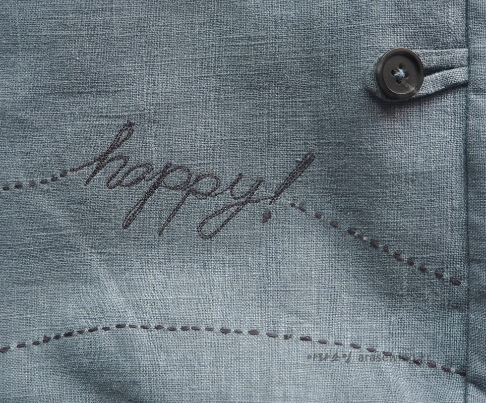 나머지 한 쪽에는 블루 원단으로 도장을 찍어 라벨을 만들어 달았습니다.