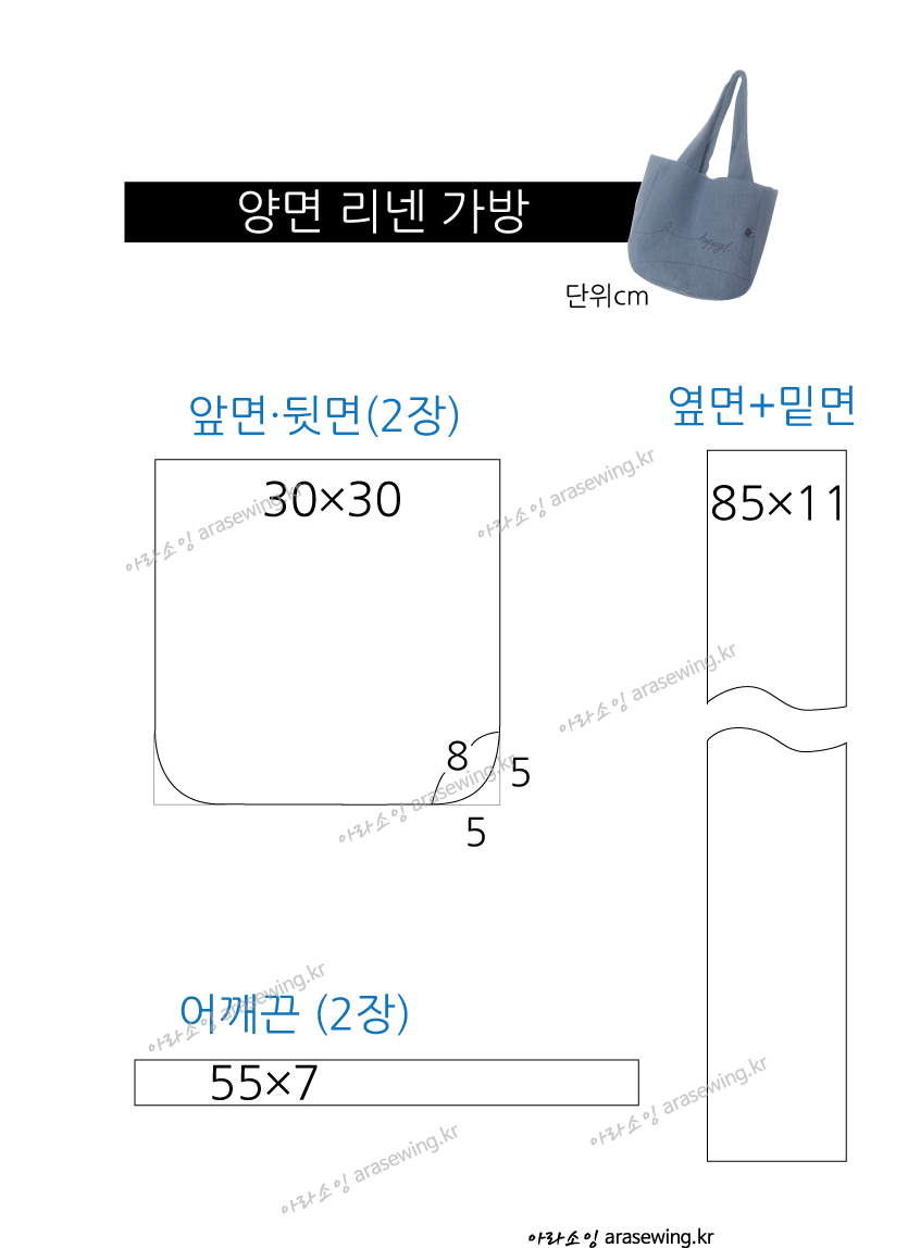 (편의상 블루 리넨을 겉감, 회색 리넨은 안감으로 표현합니다)