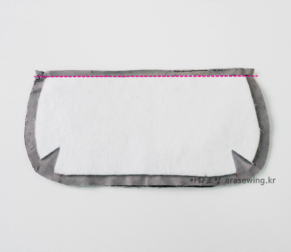 속지 부분을 그림처럼 겉감 위에 놓고 밑단 부분을 박음질합니다