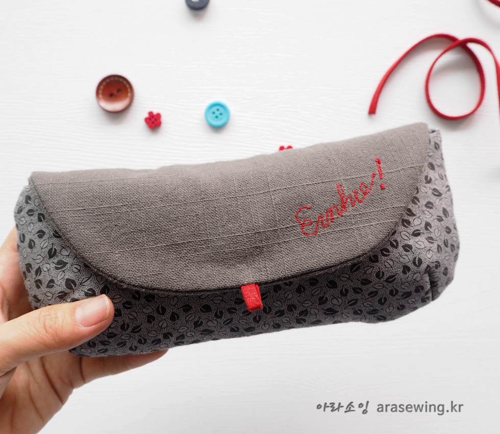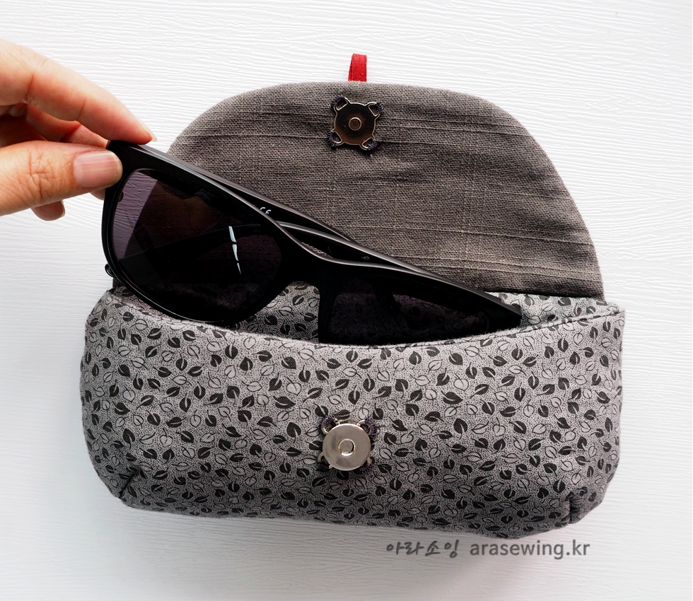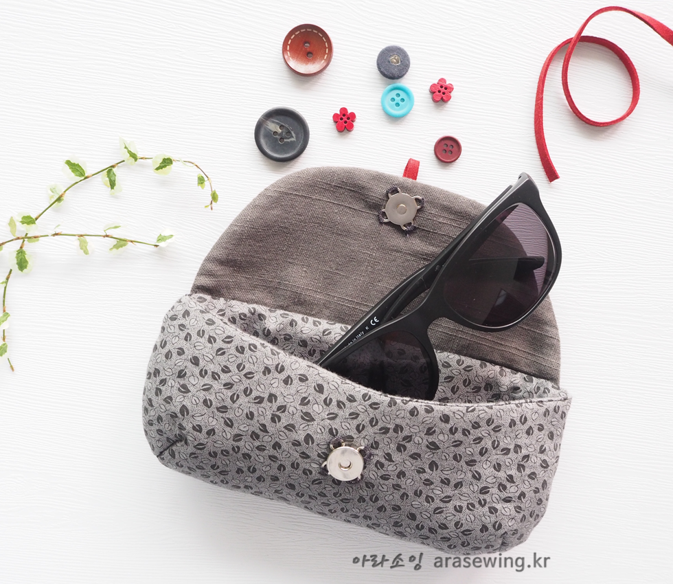 안경집을 만들고 나서야 선글라스가 생각났다. 플라스틱 안경집보다 몸집이 커서 가방 속에 넣고 다닐 때 늘 많은 자리를 차지하는 선글라스 케이스. 좀 두툼하게 만들면 어떨까 고민하다가 몸체만 두껍게 하면 되겠구나 생각이 들어 다시 또 원단을 뒤적뒤적~ 칼라 조합을 하다 보니 요렇게 찾아낸 원단이다. 아.. 원단이 엄청 많았으면 좋겠다~ ㅎㅎ 언제나 부족한 원단. 원단 쇼핑몰로 눈 안 돌린 게 어디야~ 하며 스스로를 위안하며 오늘도 드르륵~ 만들고 보니 몸통이 6온스 솜이라 두툼해서 안정감이 있어서 좋다.