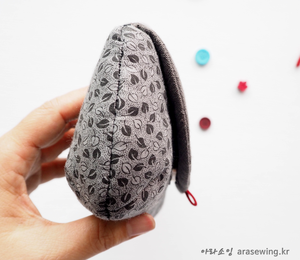 뚜껑 원단을 겉끼리 대고 반달 모양으로 박음질합니다.