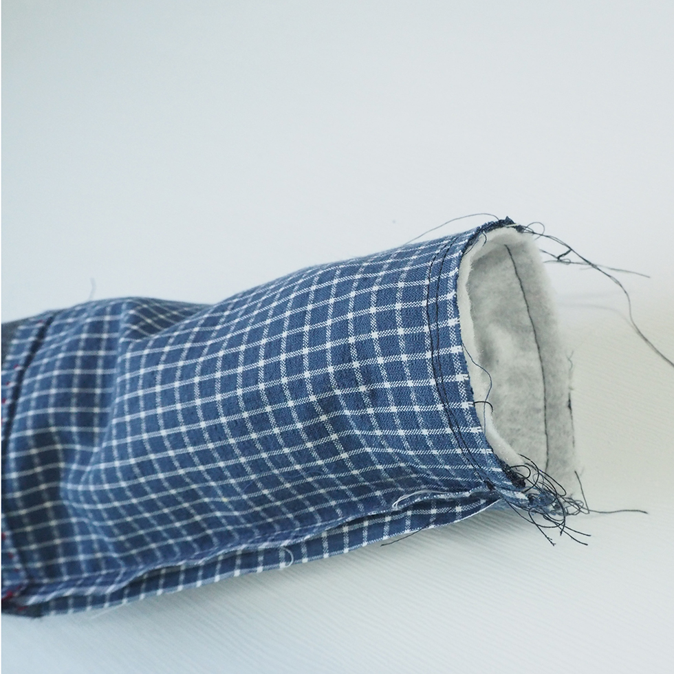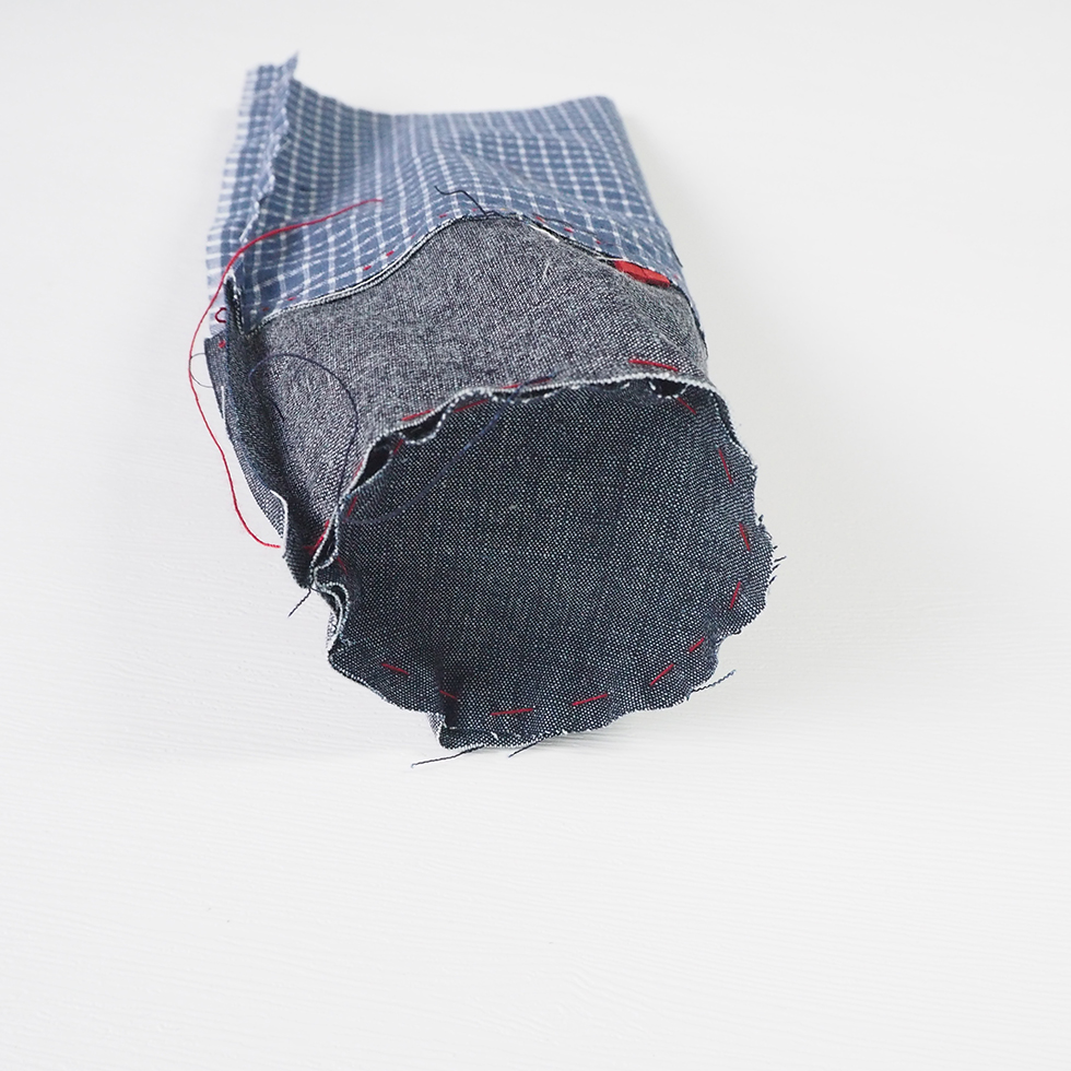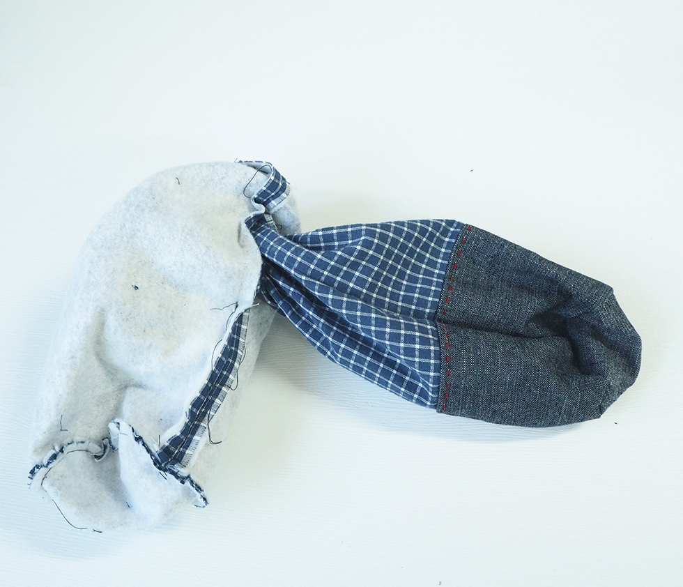 안감을 꺼내면 겉감과 안감이 연결된 원통 모양이 된다.