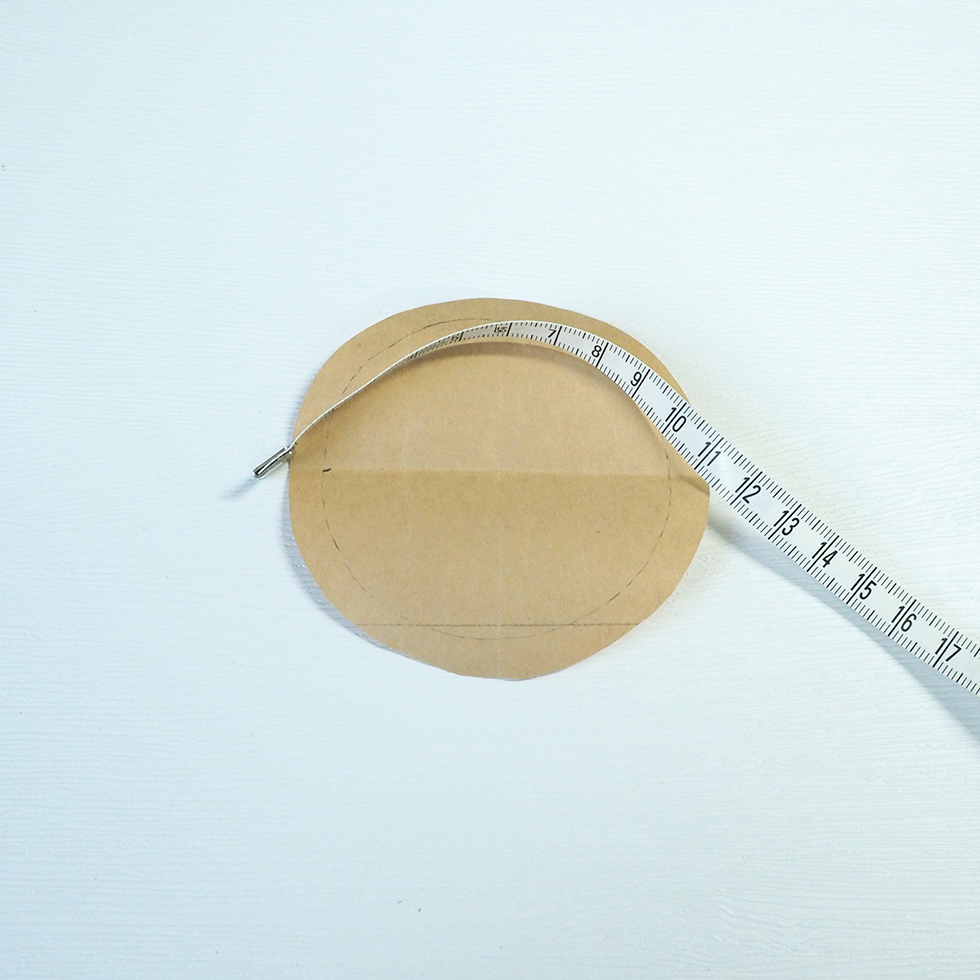 패턴을 그리고 난 후에는 몸통 가로 길이와 밑바닥 원 둘레가 같은지 확인한다. (곡선용 측정 자를 이용하거나, 줄자를 이용해 측정한다)