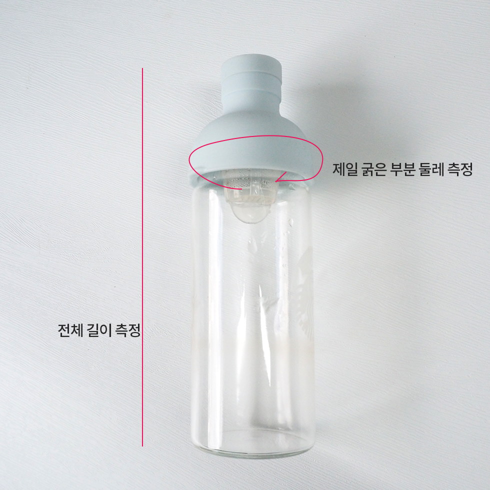 줄자로 가장 굵은 곳을 측정해서 둘레와 총 길이를 측정합니다.