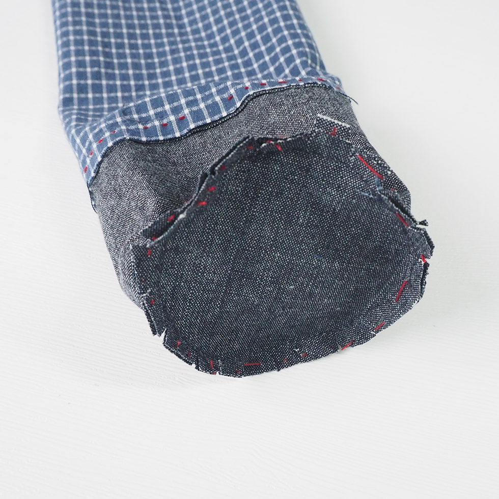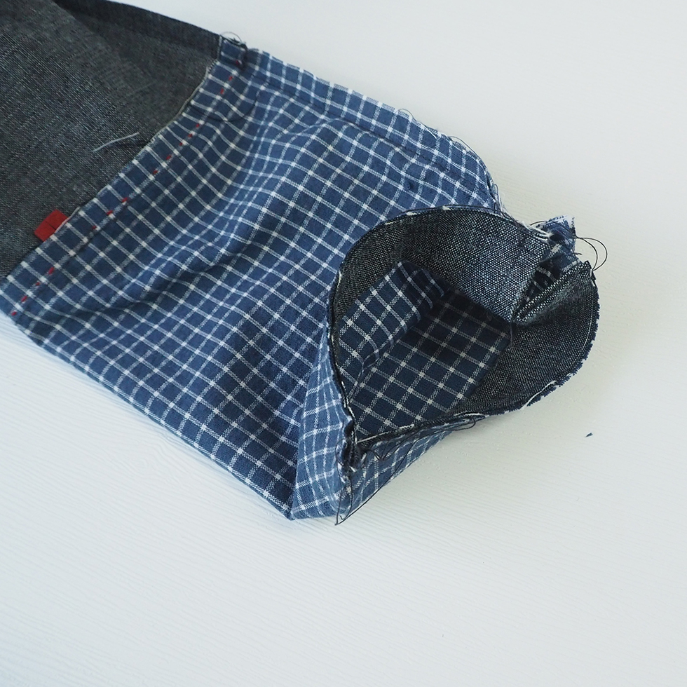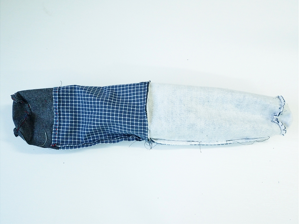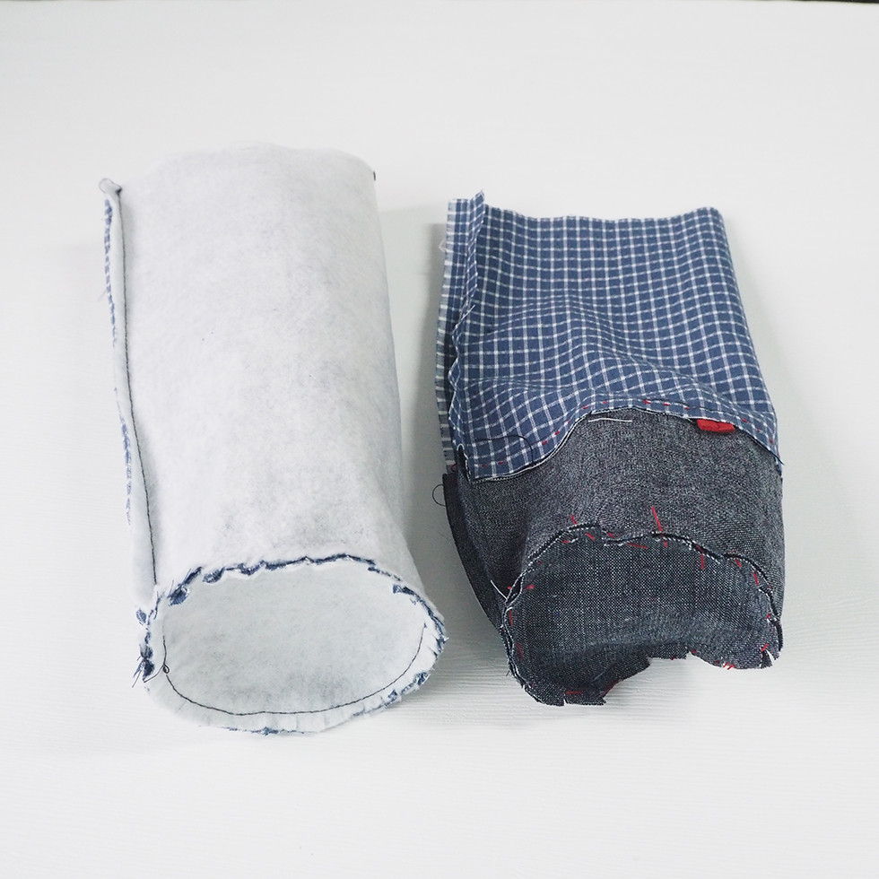 안감을 꺼내면 겉감과 안감이 연결된 원통 모양이 된다.