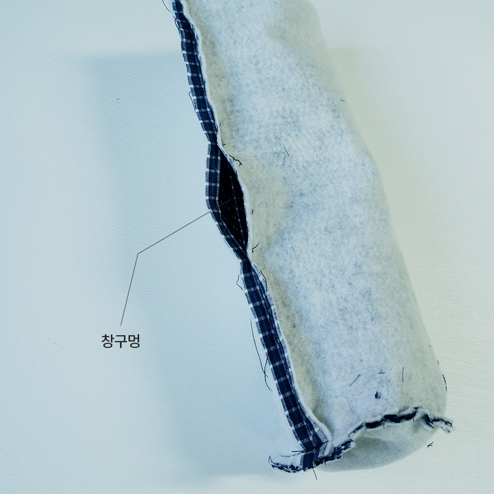 안감도 똑같이 원통을 만든다. 나중에 뒤집을 창구멍도 남겨둔다.