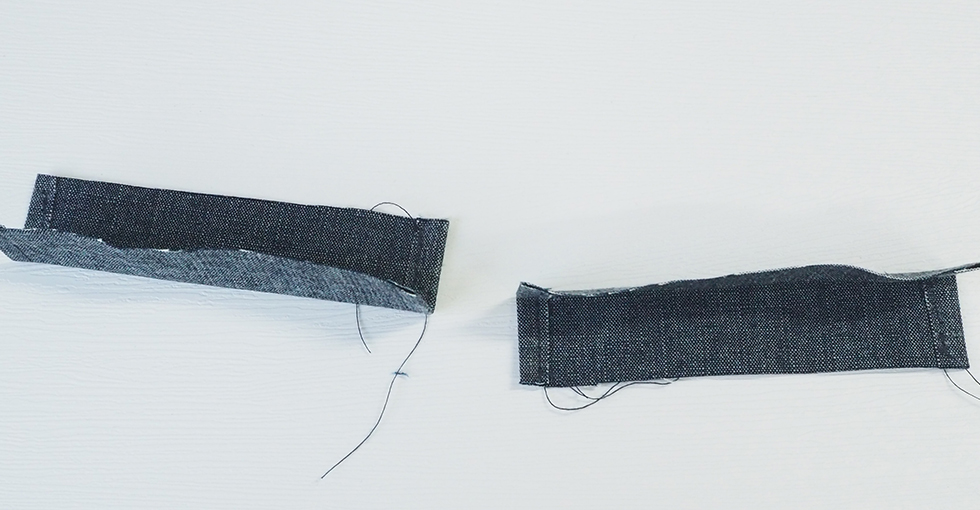 끈 들어가는 배색 부분을 양쪽을 시접을 박음질하여 준비한다.