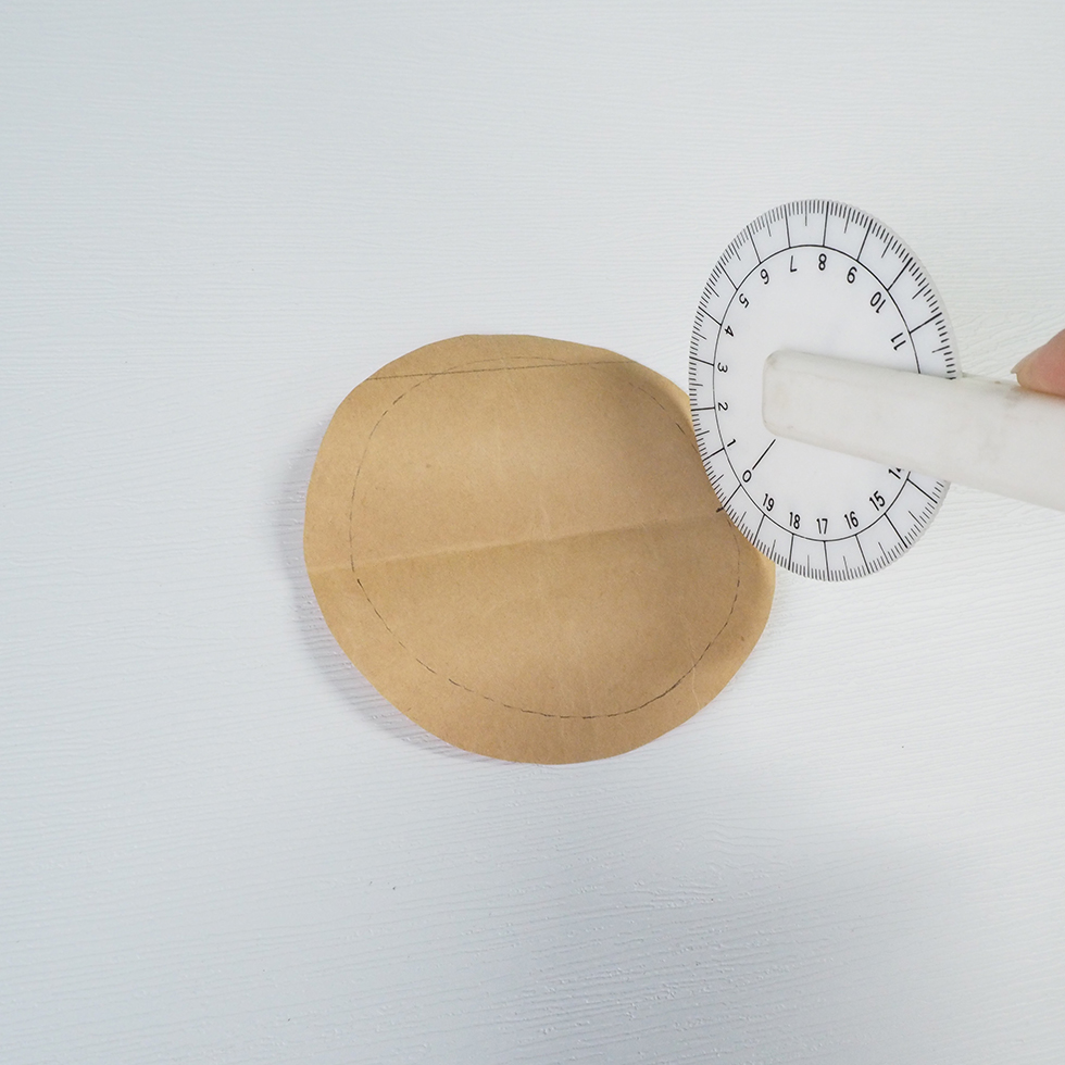 패턴을 그리고 난 후에는 몸통 가로 길이와 밑바닥 원 둘레가 같은지 확인한다. (곡선용 측정 자를 이용하거나, 줄자를 이용해 측정한다)