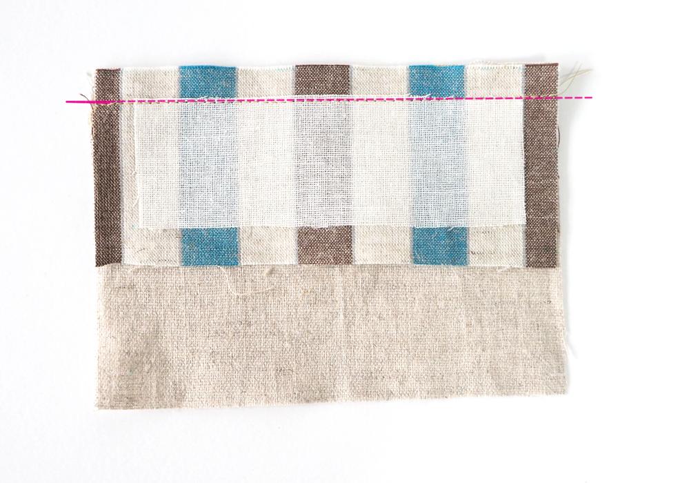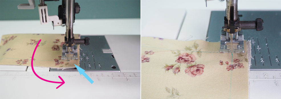 겉감의 조각을 겉끼리 대고 박음질합니다.