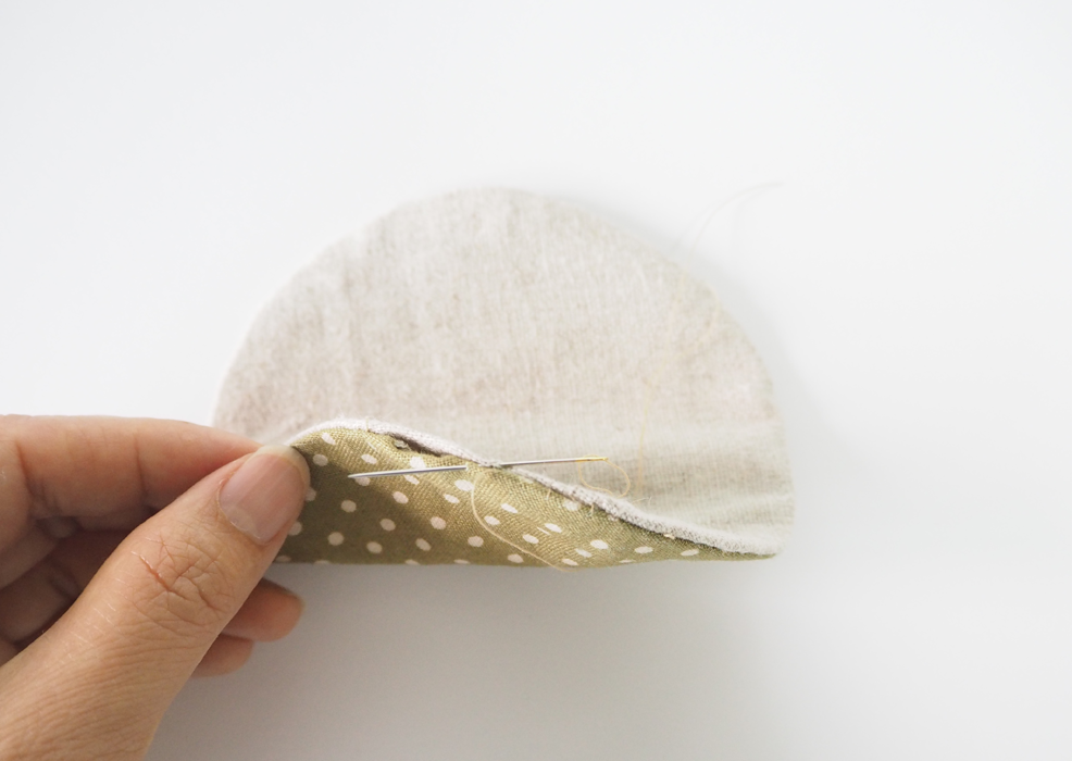 나머지 과정은 똑같아요 시접 정리하고, 뒤집어서 창구멍을 감침질해서 완성합니다.