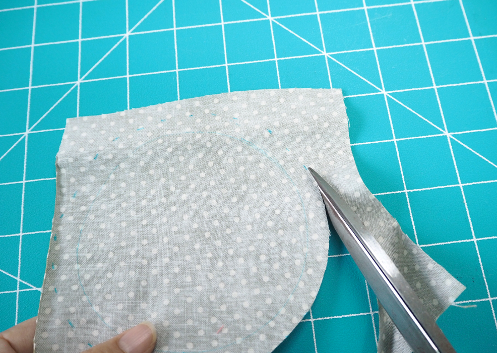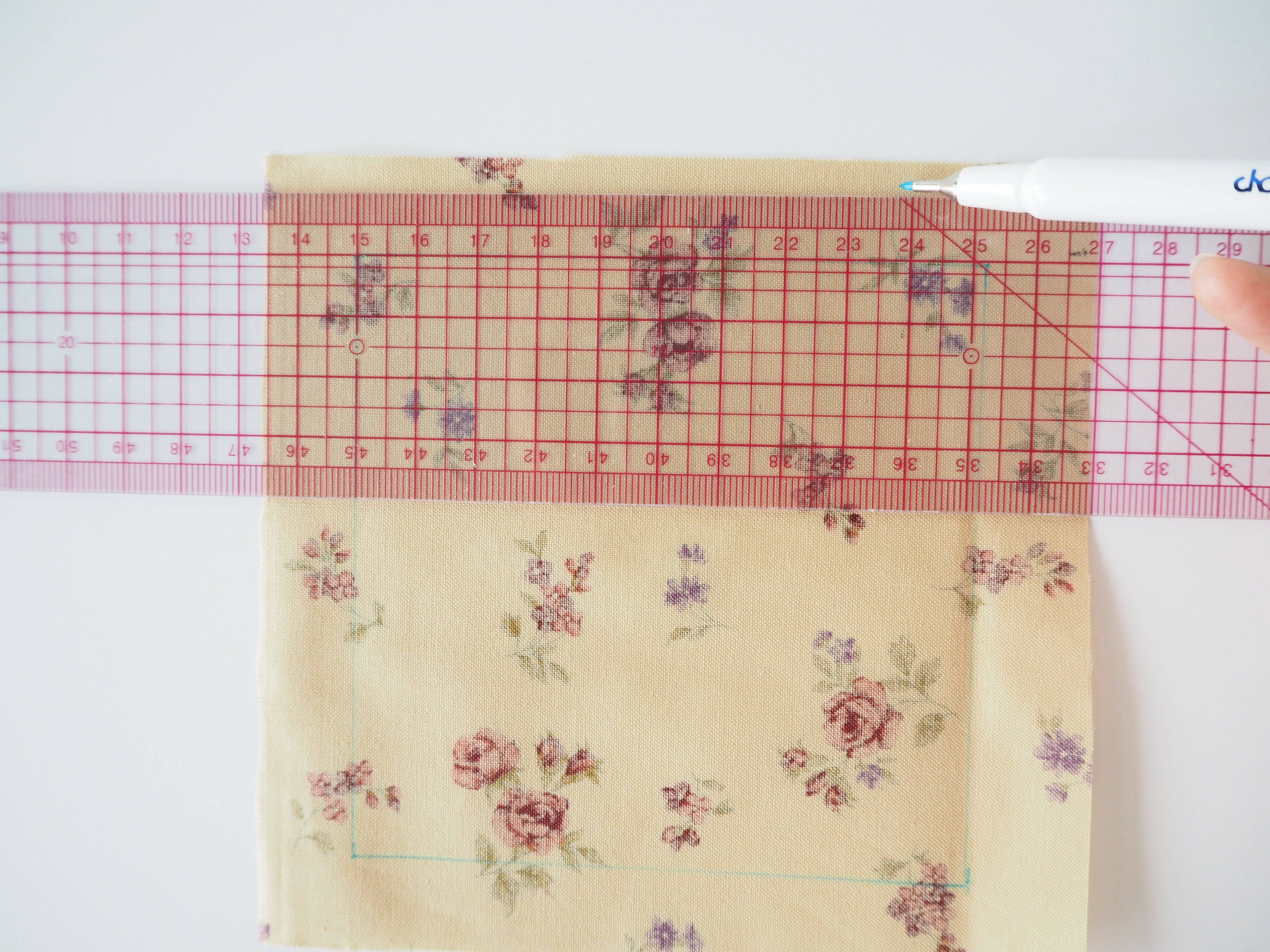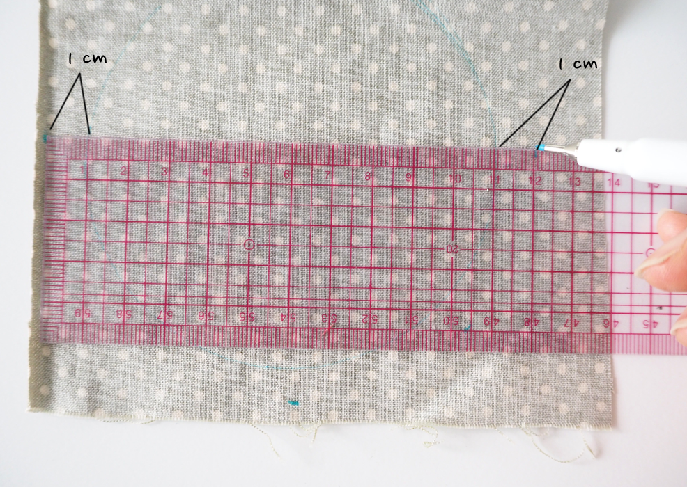 원형을 그리기 어려우면 자를 대고 시접 분 1cm를 펜으로 표시하고 연결해서 그립니다.