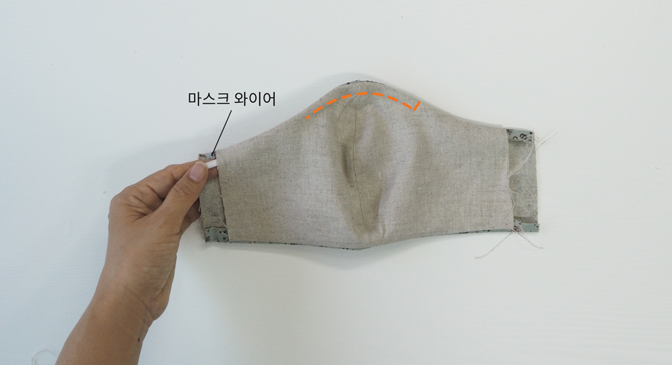9. 와이어 들어갈 부분을 박음질하고 와이어를 끼웁니다.