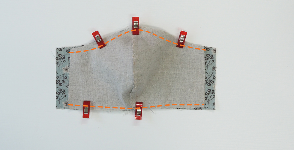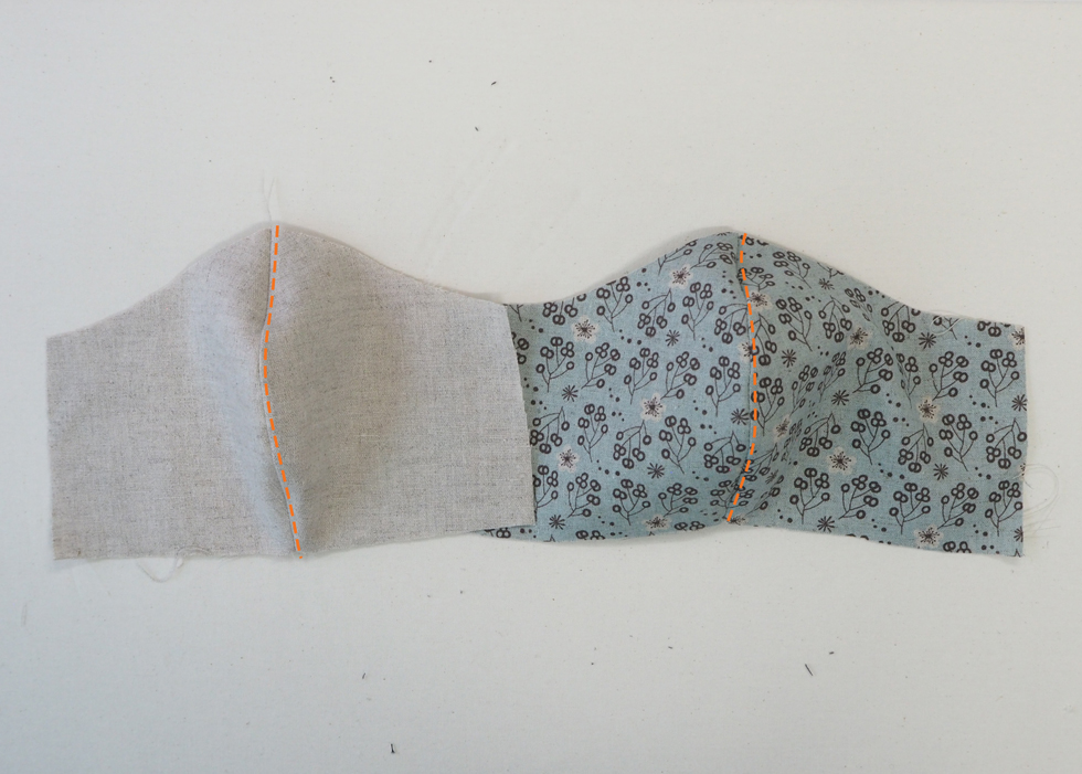 7. 겉감과 안감을 겉끼리 대고 위아래를 박음질합니다.