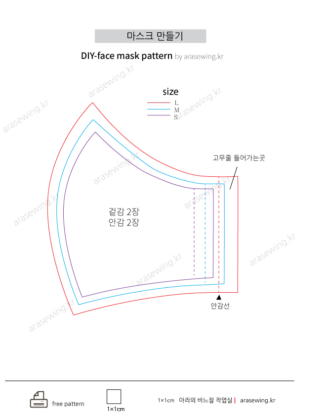 요즘 많이 만들고 있는 마스크를 작업했다. 기본형으로 바느질 초보도 쉽게 만들 수 있는 디자인으로 면이나 리넨 소재로 손쉽게 만들 수 있다. 코로나가 빨리 종식되어서 마스크 없이도 외출이 자유로운 시간이 빨리 왔으면 좋겠다.