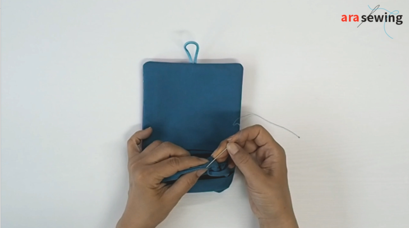 모서리 부분을 잘 마무리 하고 창구멍을 감침질합니다.