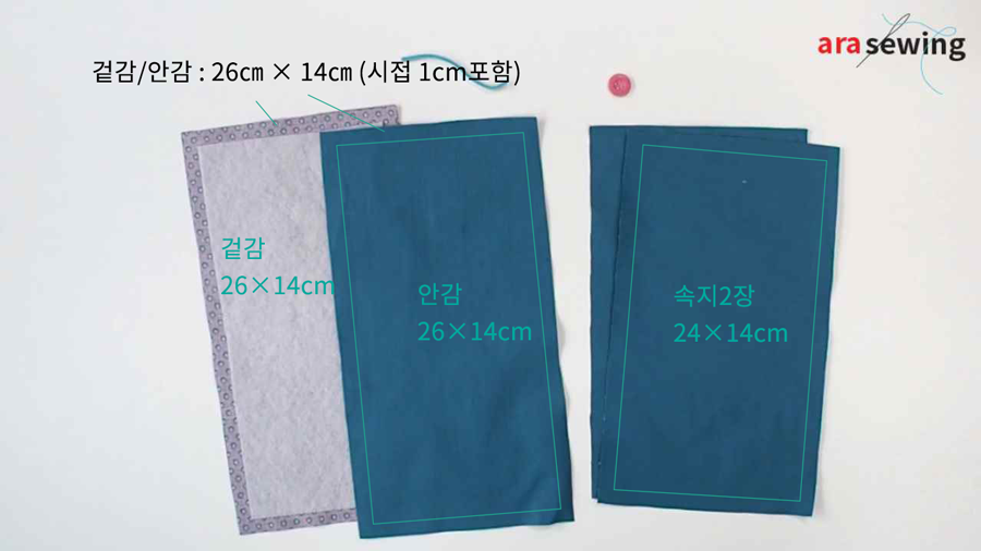 겉감 : 26㎝ × 14㎝ 1장 (시접 포함)