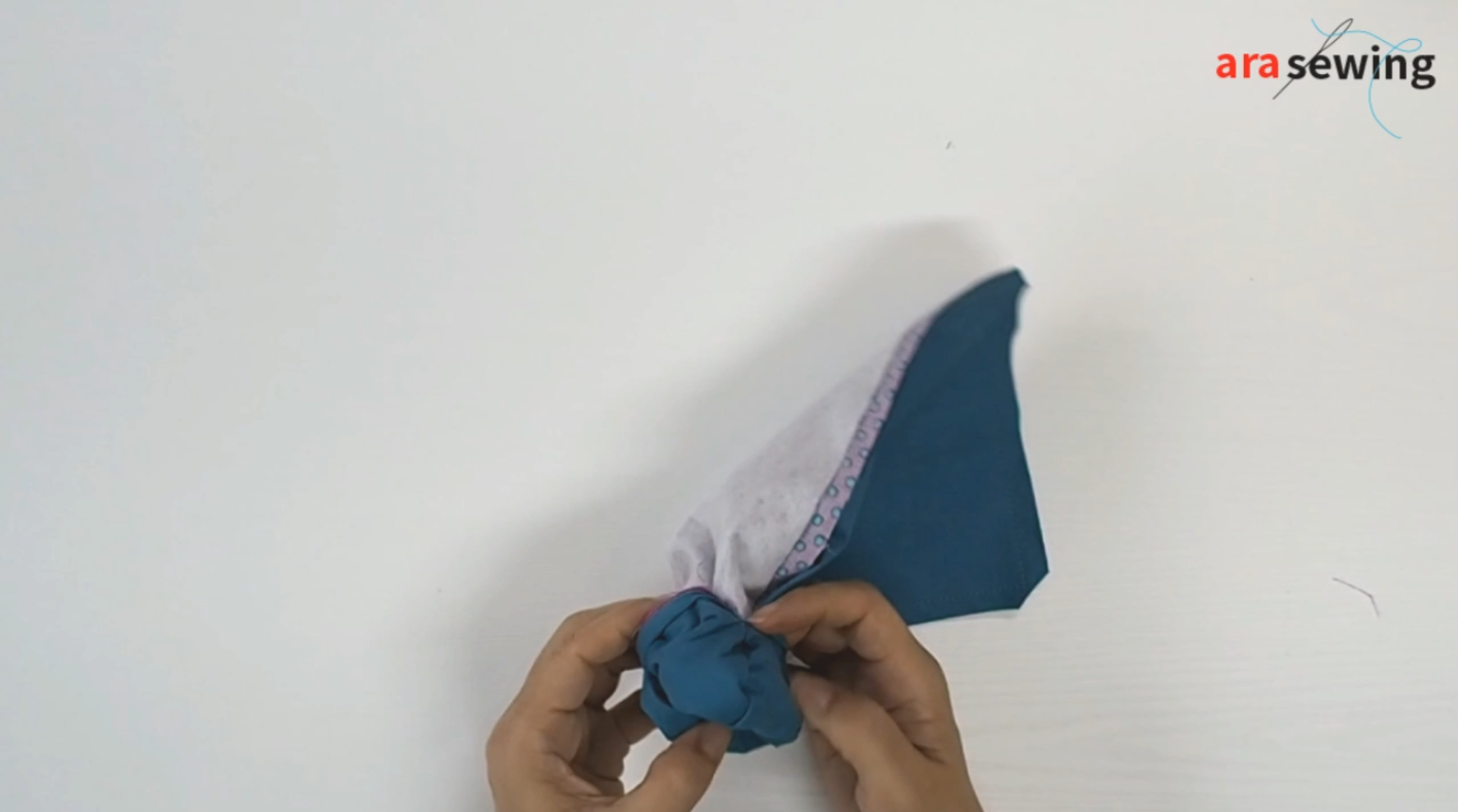 뒤집으면 이런 모양이 됩니다. 다시 겉감이 보이도록 뒤집습니다.