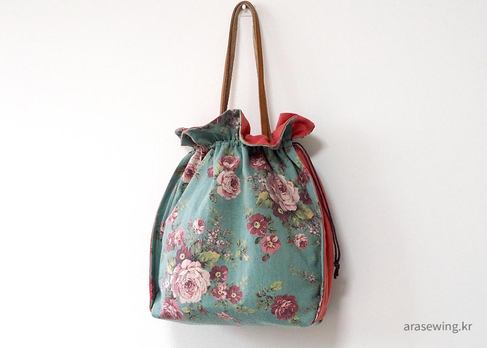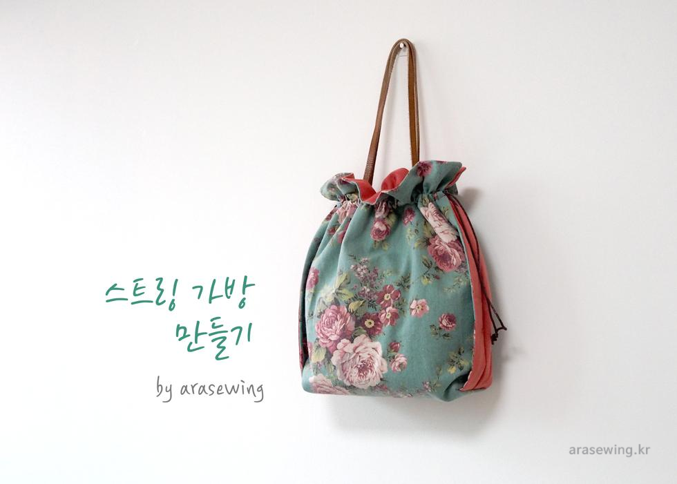 평소 러블리한 스타일이 아니라 스트링 백은 워낙에 안 만들었다. 들고 다닐지 어떨지 모르지만 일단 생각나는 대로 손이 벌써 움직이고 있었다. 전부터 눈여겨보고 있던 디자인으로 원단을 뒤져서 매칭~!