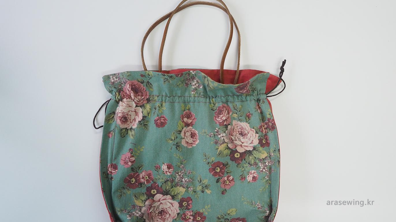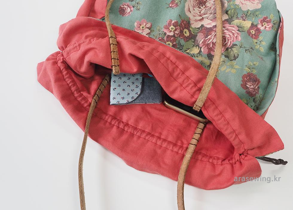 평소 러블리한 스타일이 아니라 스트링 백은 워낙에 안 만들었다. 들고 다닐지 어떨지 모르지만 일단 생각나는 대로 손이 벌써 움직이고 있었다. 전부터 눈여겨보고 있던 디자인으로 원단을 뒤져서 매칭~!