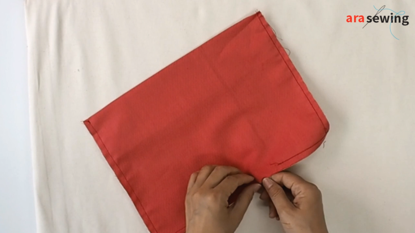 11. 뒤집어서 밑바닥 양끝을 박음질합니다.