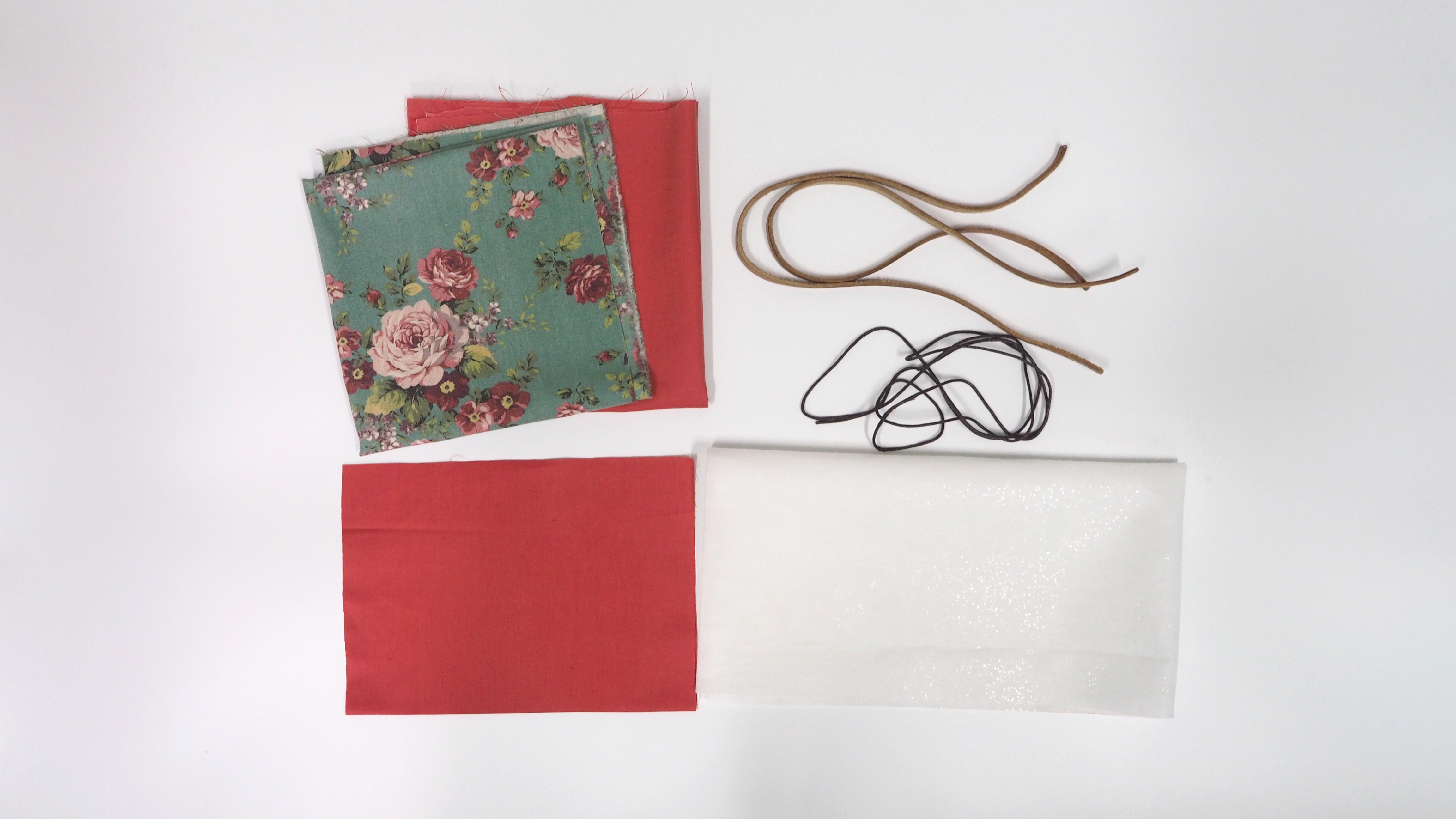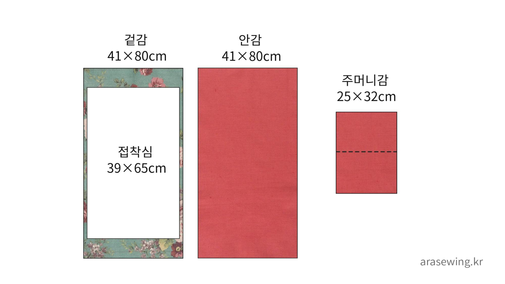 1. 준비된 겉감, 안감, 접착 심지를 준비하여 재단합니다.