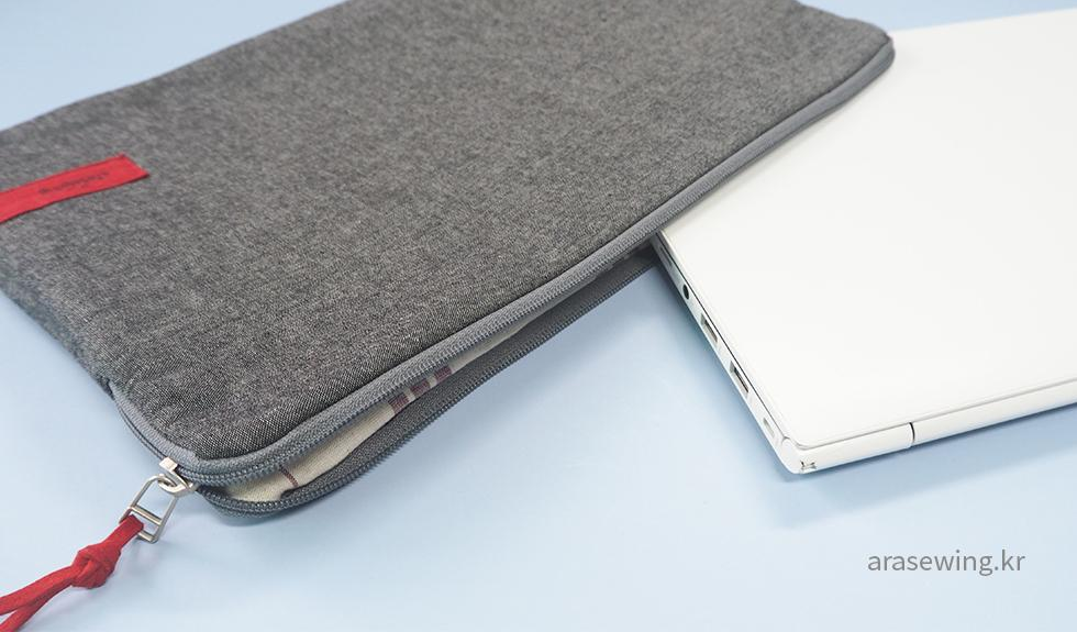 사실 노트북 파우치는 가성비로 따지면 기성품을 구매하는 편이 훨씬 좋다. 바느질도 바느질이지만 가격이 저렴한 게 인터넷 쇼핑에 많아서 잘 고르면 착한 가격에 꽤 괜찮은 파우치를 구입할 수 있기 때문이다. 그래도 바느질하는 사람이 노트북 파우치쯤은 만들어야 하지 않을까... 하고 오기 같은 게 생겨서 손이 먼저 움직이고 말았다.