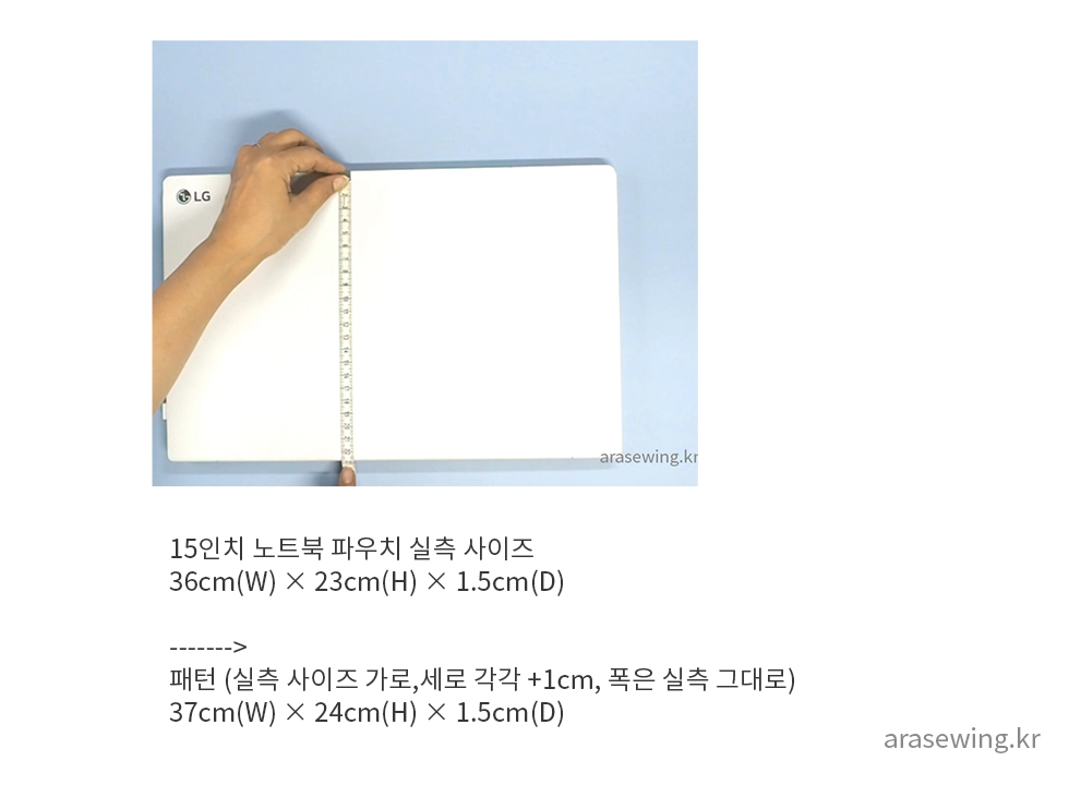 노트북 사이즈를 가로, 세로, 폭을 측정한다.