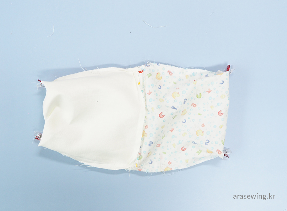 겉감과 안감을 마주 보게 하고 양 끝을 박음질합니다.