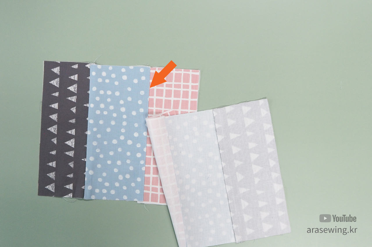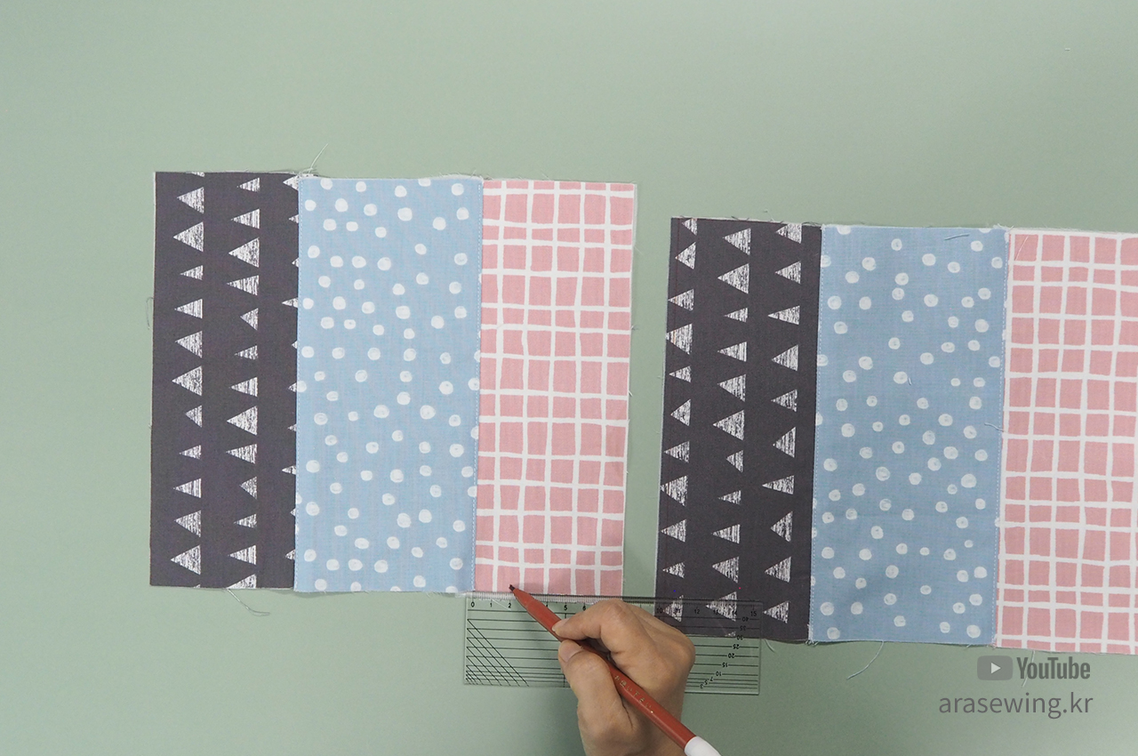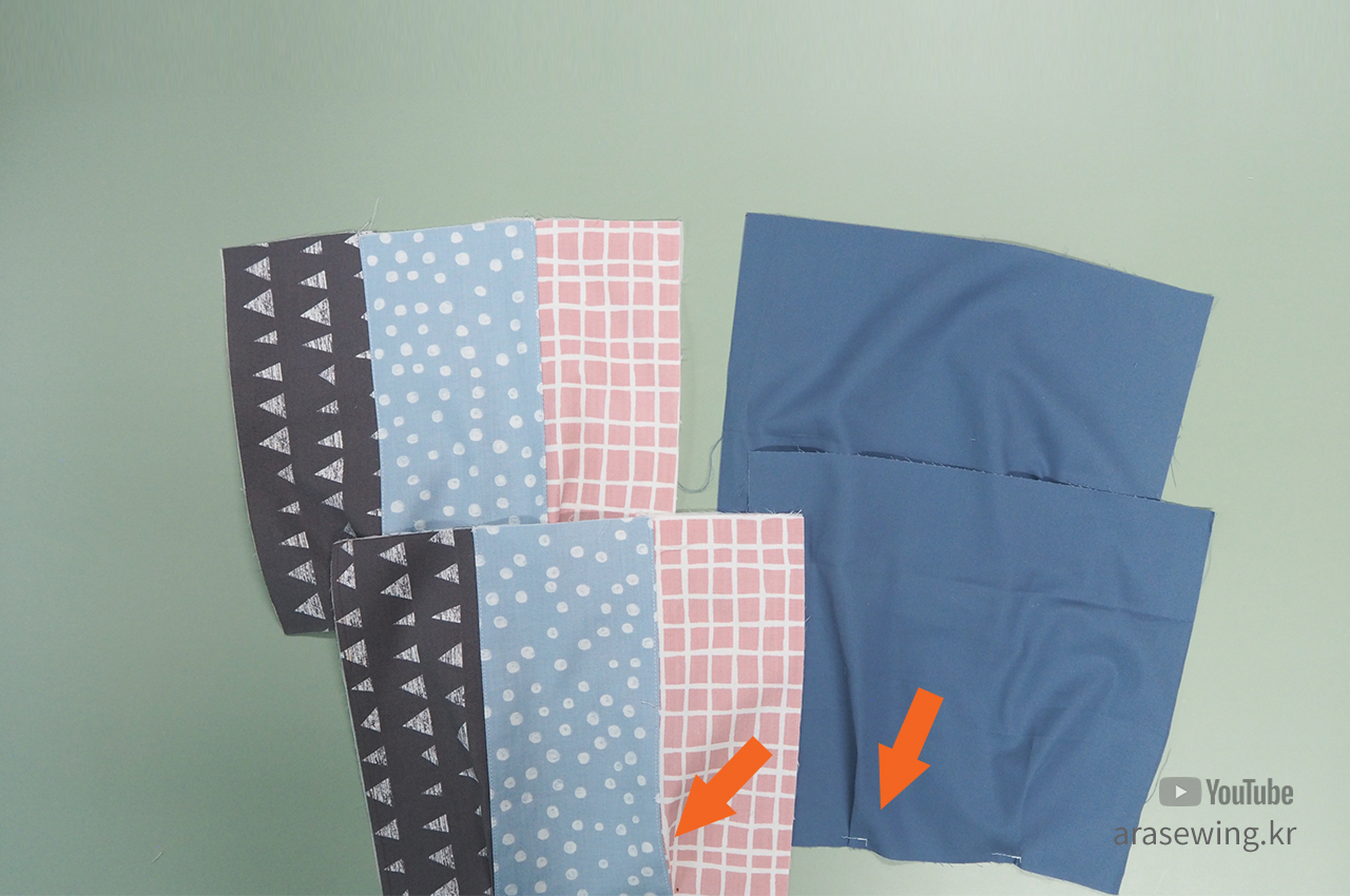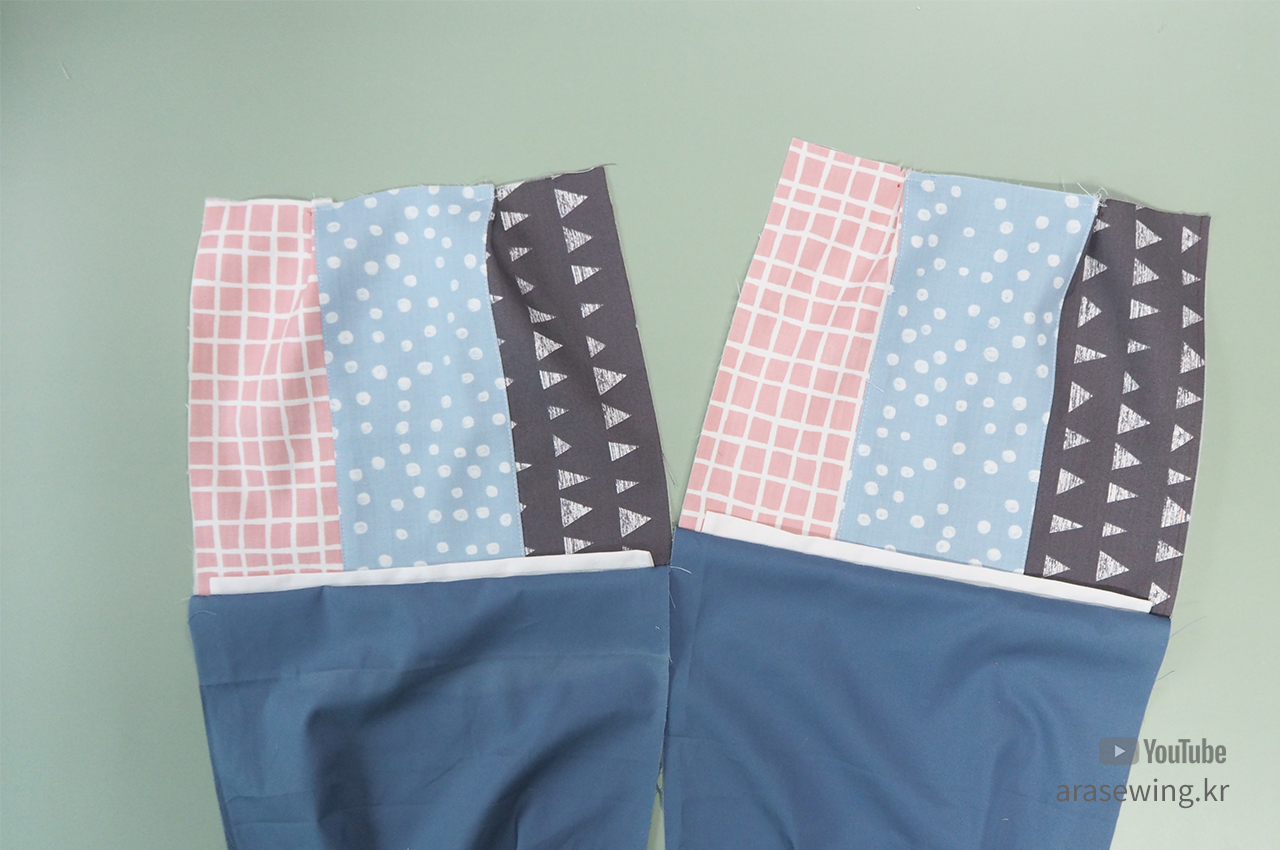 겉감 3조각을 연결한 후에 상침 합니다.