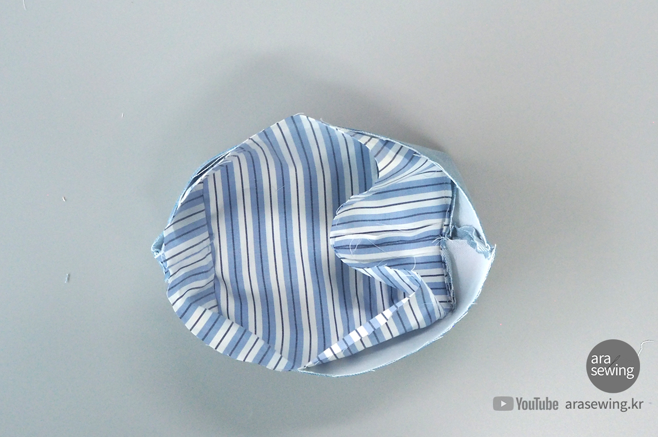 겉감, 안감을 각각 반으로 접어서 양 옆선을 박음질합니다.