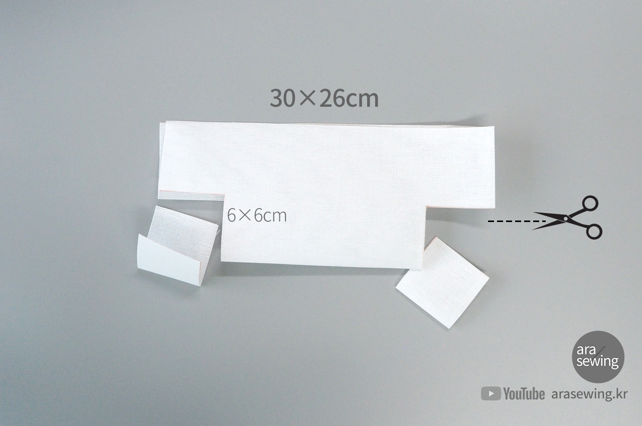 가방용 심지를 완성 크기만큼 잘라서 준비합니다 (30×26cm)