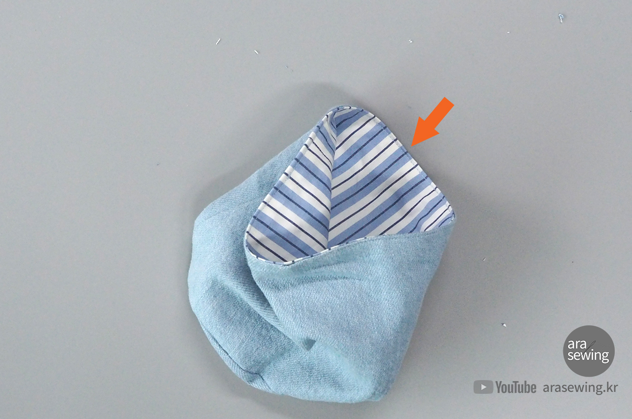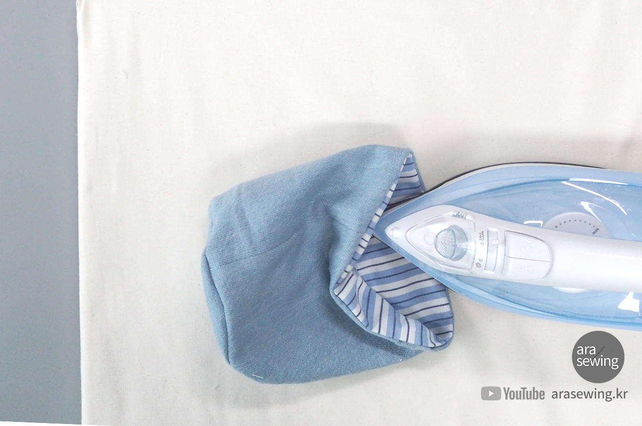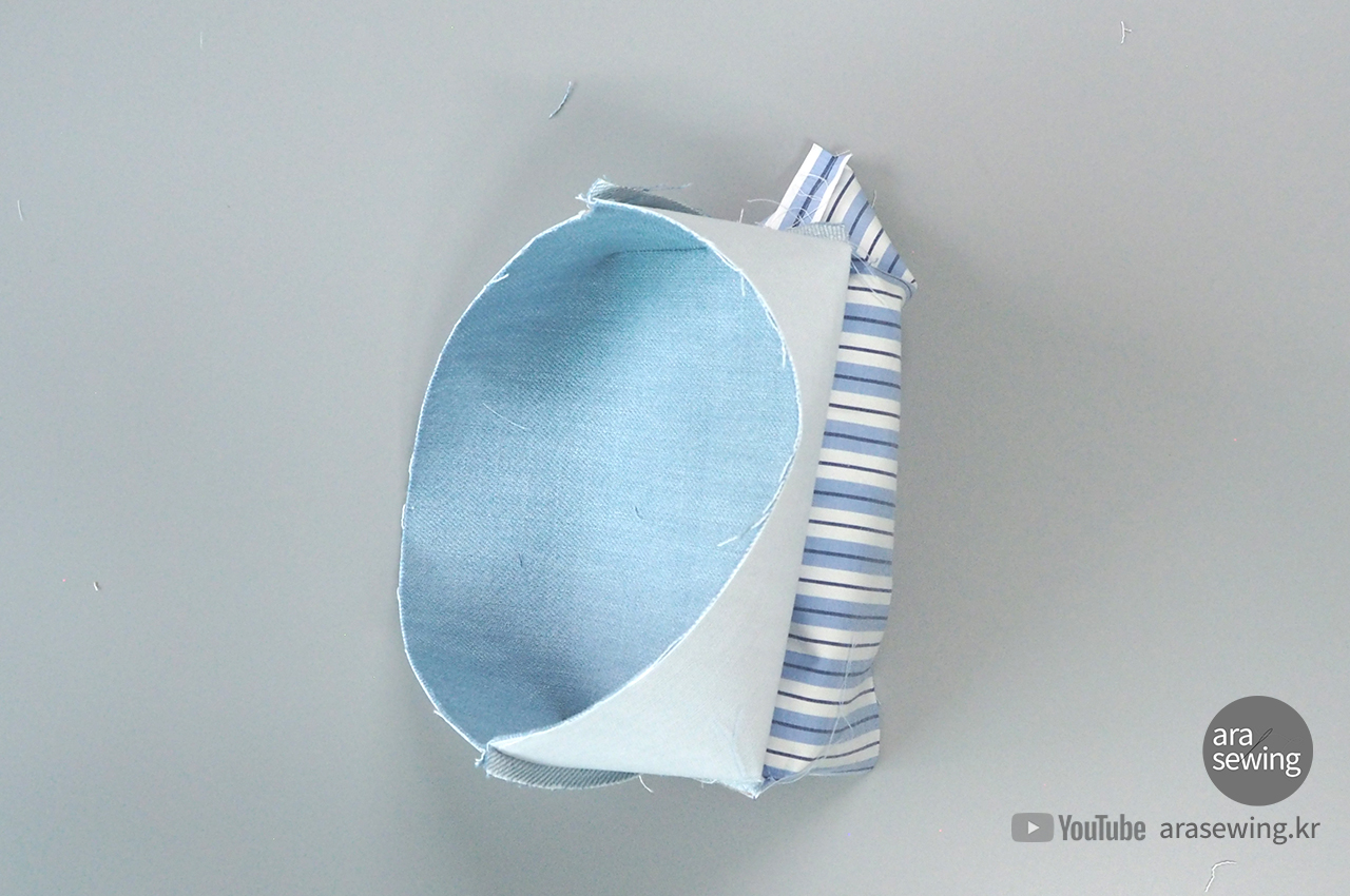 바닥면을 만들기 위해 모서리를 접어서 박음질합니다.