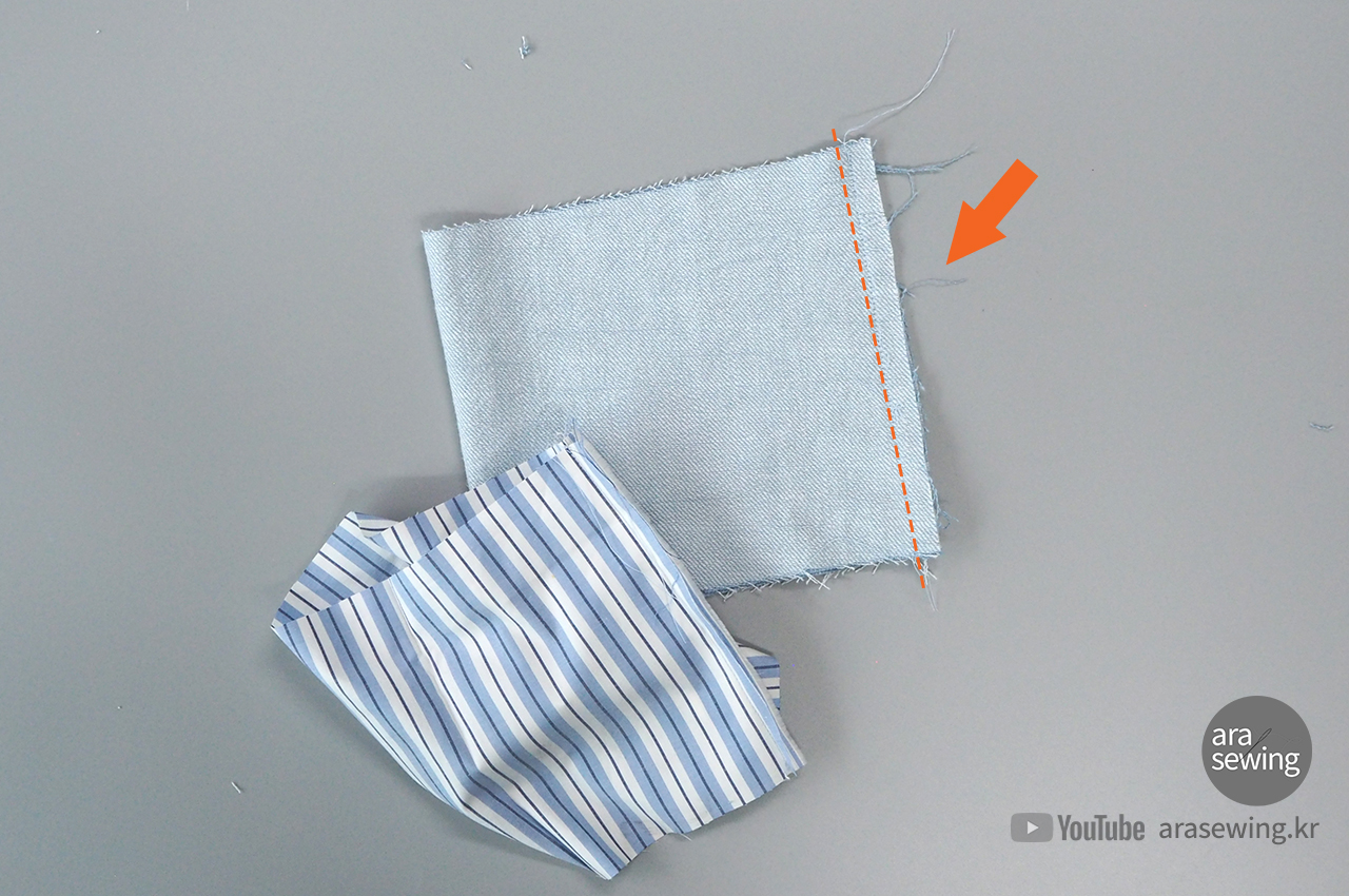 겉감과 안감의 옆선을 각각 박음질합니다.