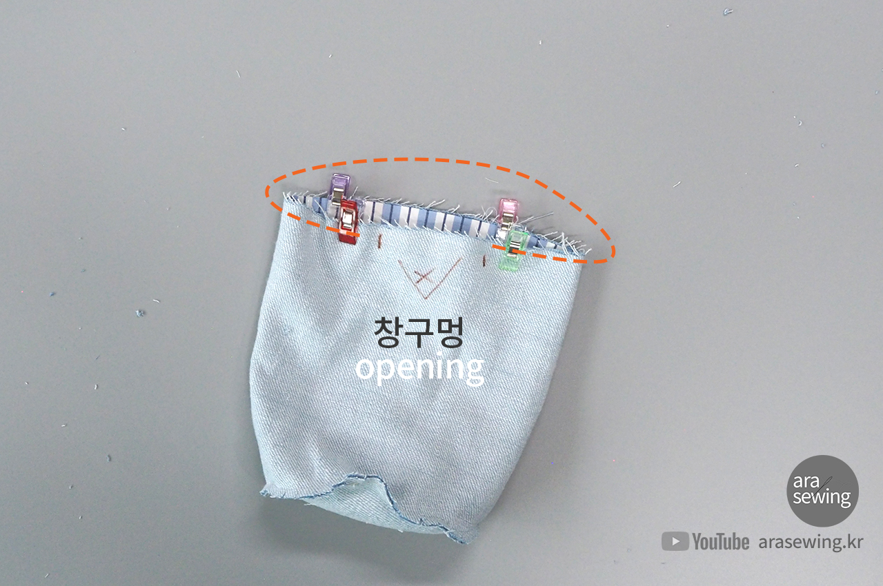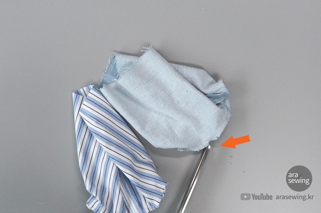 바닥 부분의 시접을 잘라내고 가윗밥을 줍니다.