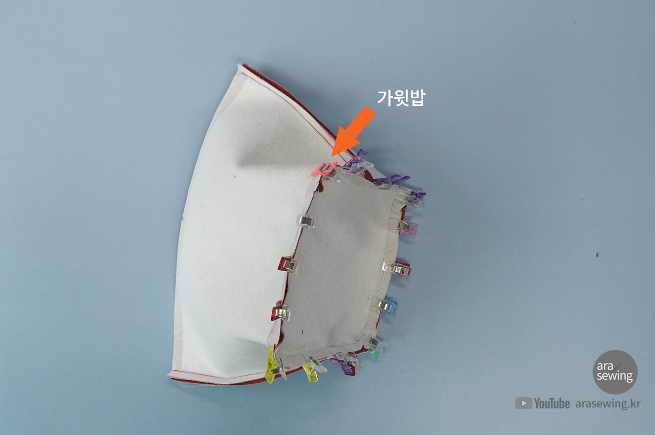 겉감 몸통을 겉끼리 대고 옆선을 박음질합니다.