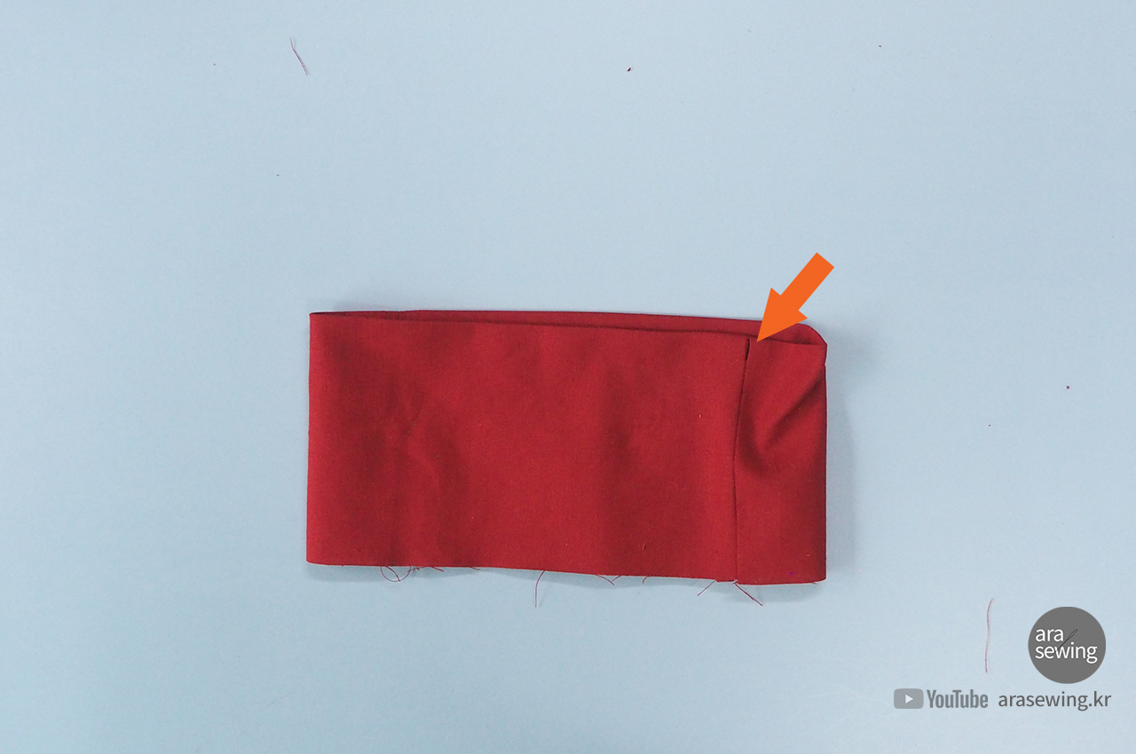 겉이 나오게 반으로 접어서 다림질로 정리합니다.