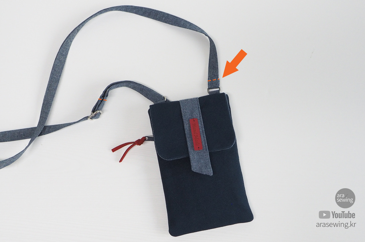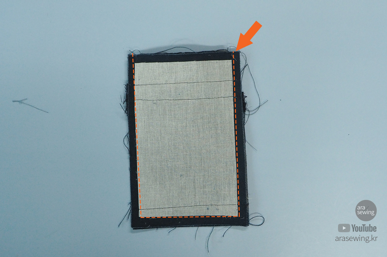 가방 뚜껑을 그 위에 겉면을 대고 박음질로 고정합니다.