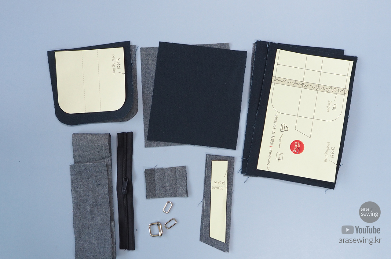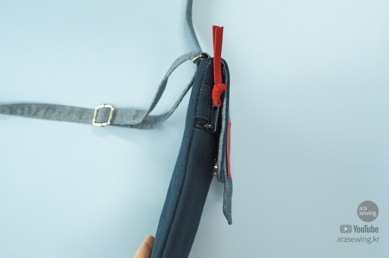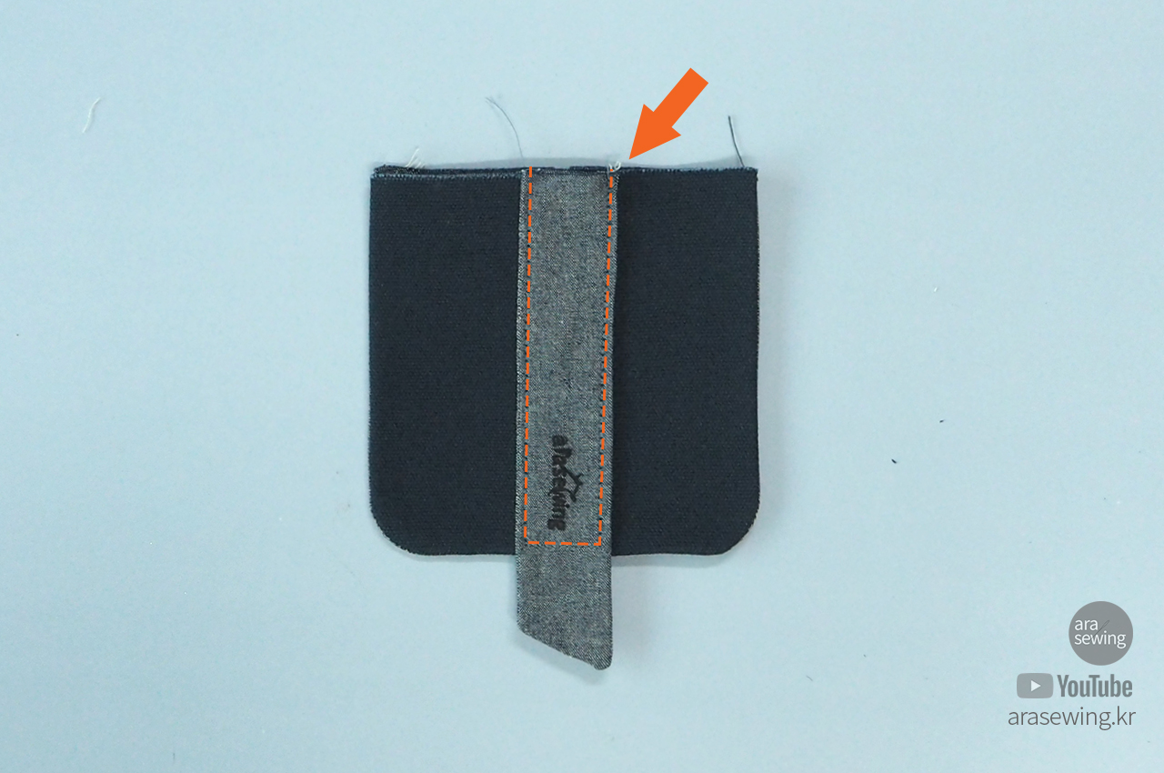 가방 뚜껑을 그 위에 겉면을 대고 박음질로 고정합니다.