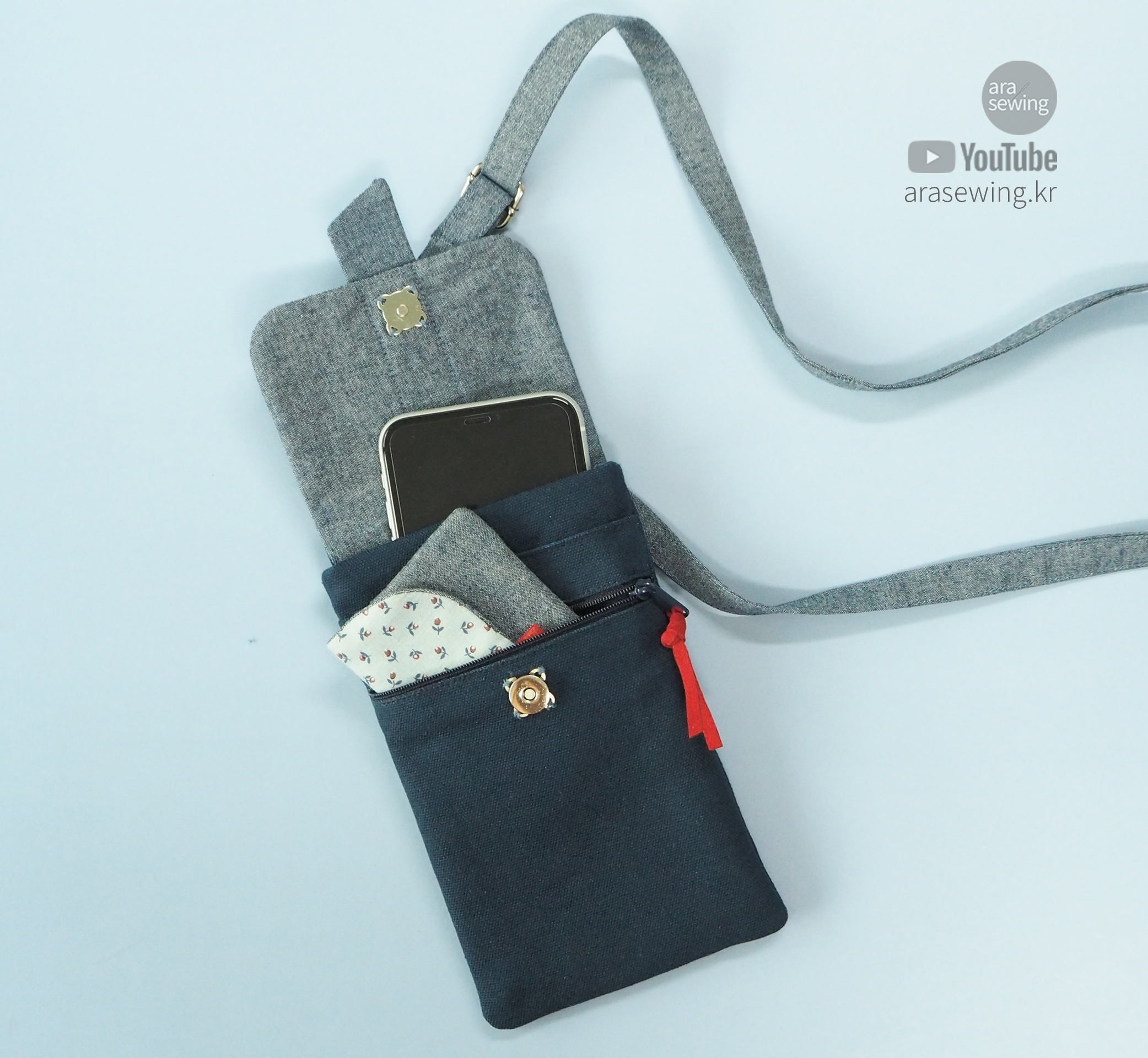 크로스백으로도 활용할 수 있는 휴대폰 가방을 만들고 싶어서 열심히 바느질 하던 중, 만드는 중간에 재봉틀도 고장 나고 이제야 수리가 되어서 완성할 수 있었다. 참으로 길게 느껴지는 시간이었다. 재봉틀이 없으니 더 바느질을 더 하고 싶은 마음이 드는 건 왜인지...