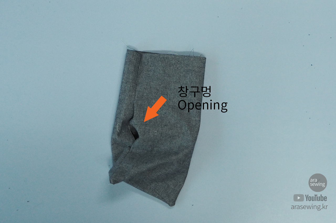 창구멍으로 뒤집고 감침질로 마무리를 합니다.