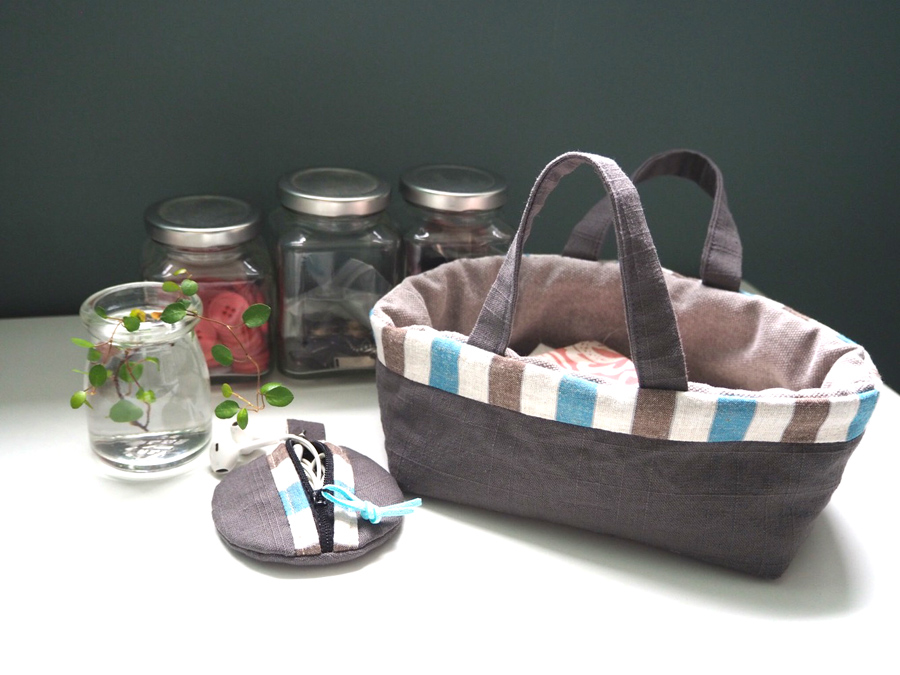 자투리 원단 보관 바구니와 그 보다 더 작은 조각 원단 보관 바구니를 만들었다.