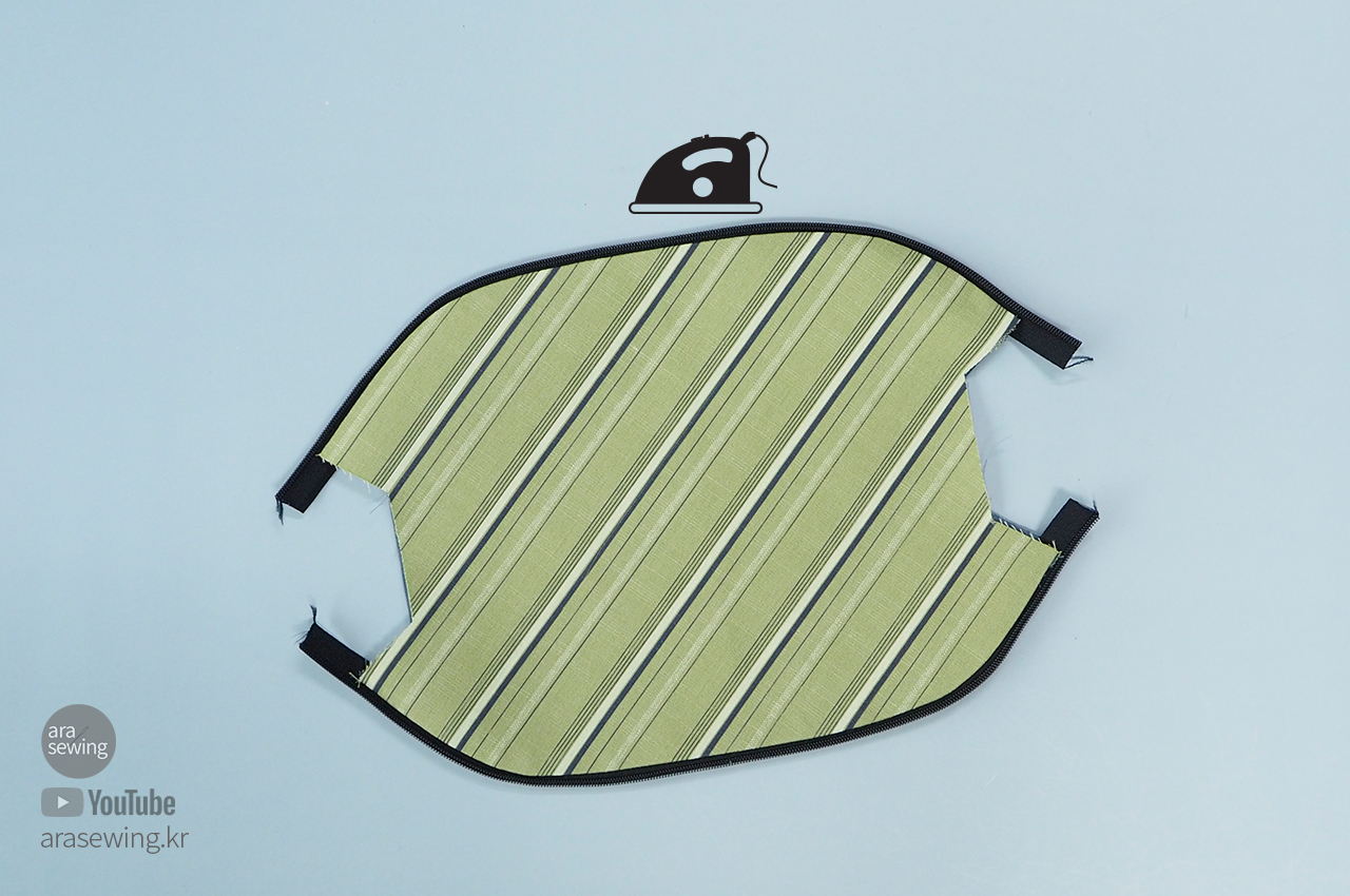 겉면이 나오게 뒤집은 후에 다림질로 정리합니다.