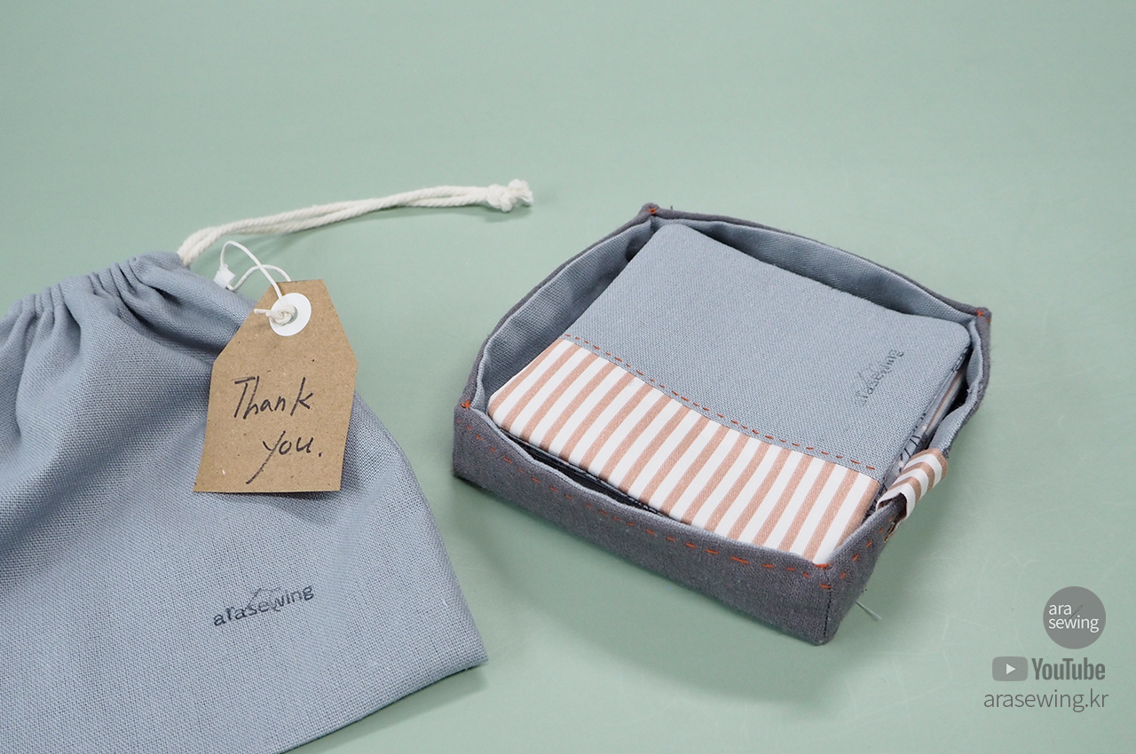 연말이 되면 주변 사람들에게 작은 선물 할 일이 생기게 됩니다. 바느질을 취미로 해서 그런지 이왕이면 기성품 같지 않게, 대량 생산된 느낌이 아닌, 뭔가 그래도 정성이 들어간 선물이면 좋겠다고 생각했습니다. 호불호가 별로 없는 티코스터 정도면 무난하지 않을까 생각해서 만들었어요. 나중에 파우치로 쓸 수 있도록 스트링 주머니로 포장을 대신했습니다.