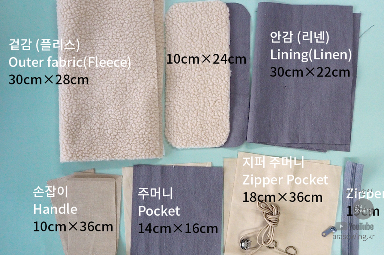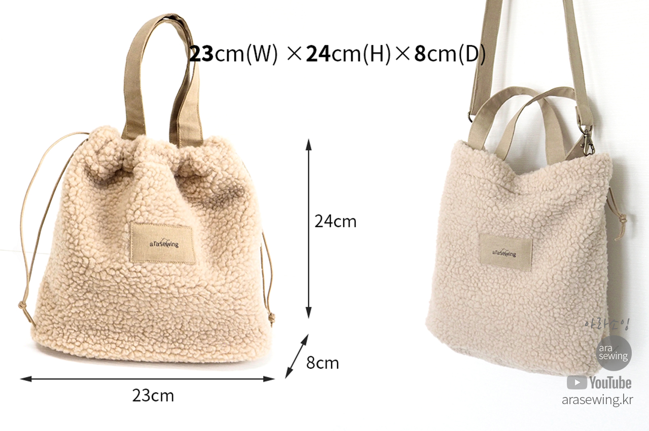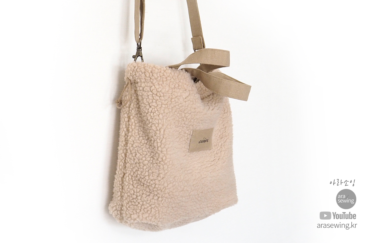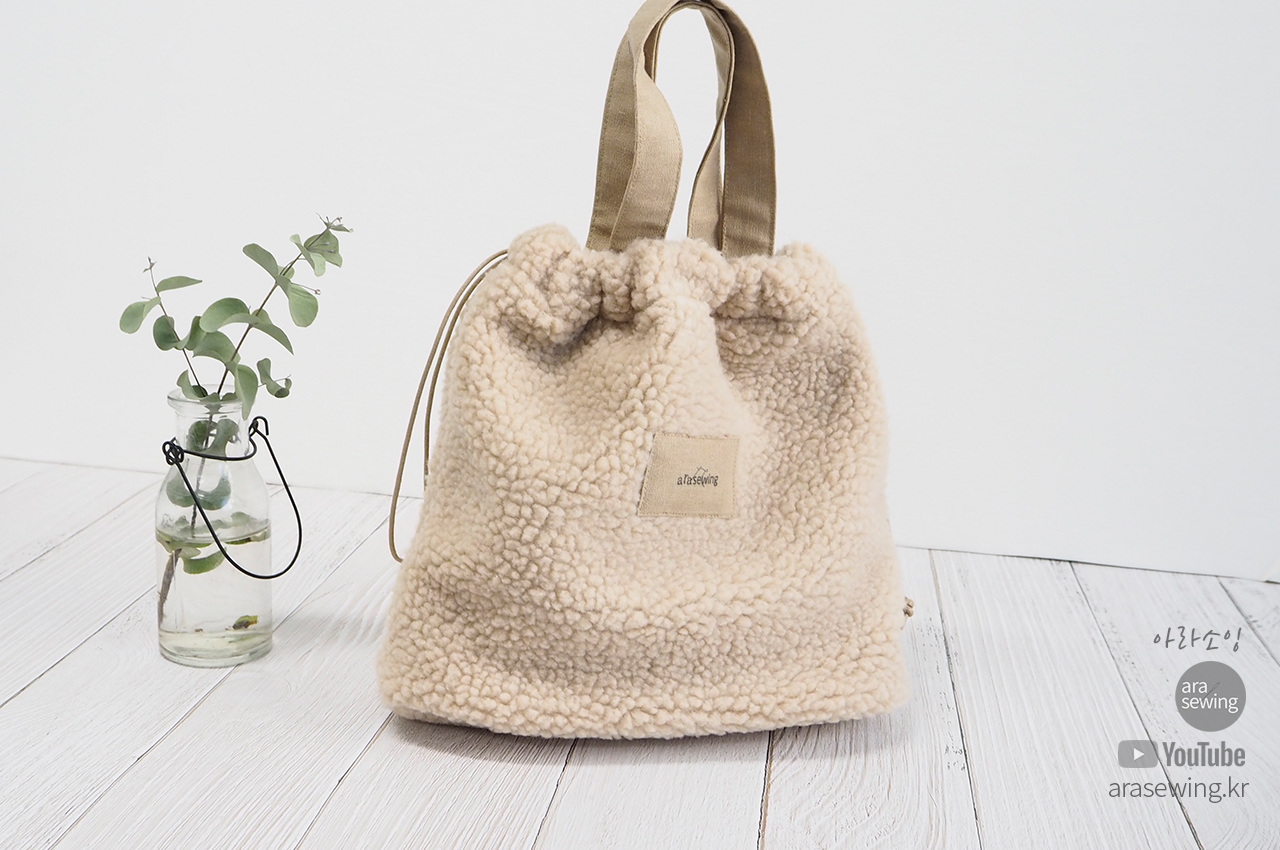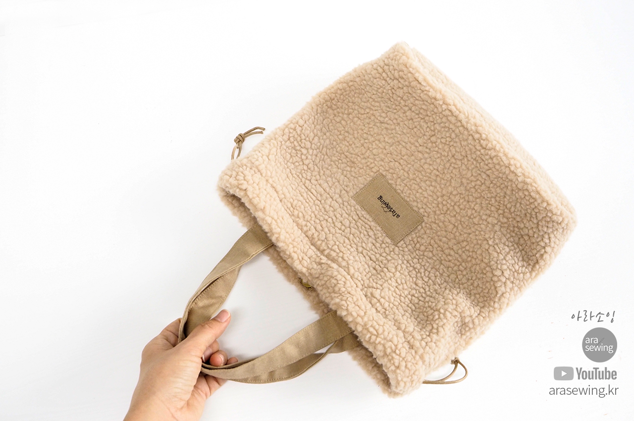 요즘 많이 보이는 플리스 원단으로 가방을 만들었습니다. 뽀글뽀글 털이 폭신하고 귀여운 가방입니다. 가방은 손으로 들어도 되는 토트백이 되기도 하고 스트랩을 연결하면 크로스백이 되기도 합니다. 이 원단은 쓰임새가 많은 원단으로 의류나 소품 등 여러곳에 쓰이지만 가정용 재봉틀로 바느질 하기에는 어려움이 있지요. 바로 니트의 특성인 신축성 때문입니다. 일반 우븐을 박음질 할 때 사용 하는 바늘을 사용하면 바늘땀이 뜨면서 잘 안박힙니다. 이런 니트류를 재봉 할 때는 볼포인트 바늘을 쓰면 바늘땀이 뜨거나 봉제가 안되는 걸 보완할 수 있습니다. 적당한 접착심지와 바늘을 사용하여 플리스 원단을 바느질 해 보세요.