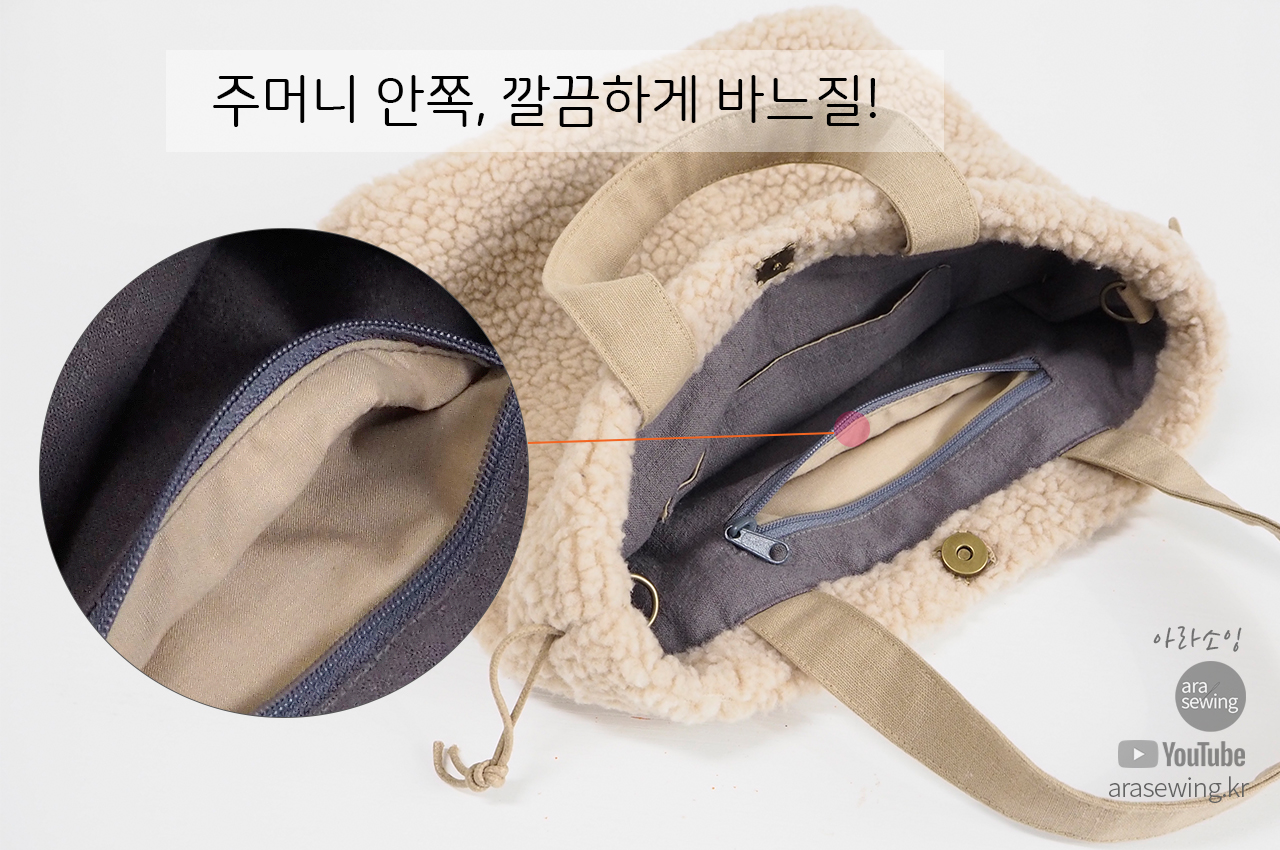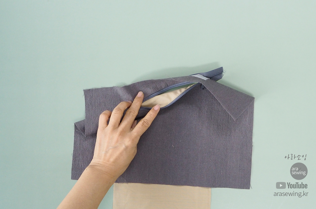 지퍼 주머니를 만들면서 지퍼 안쪽 테이프가 주머니감으로 들어가서 안보이도록 깔끔하게 바느질하는 방법을 알아봅니다. 어렵지 않으니 천천히 순서대로 하면 예쁘게 만들 수있습니다.